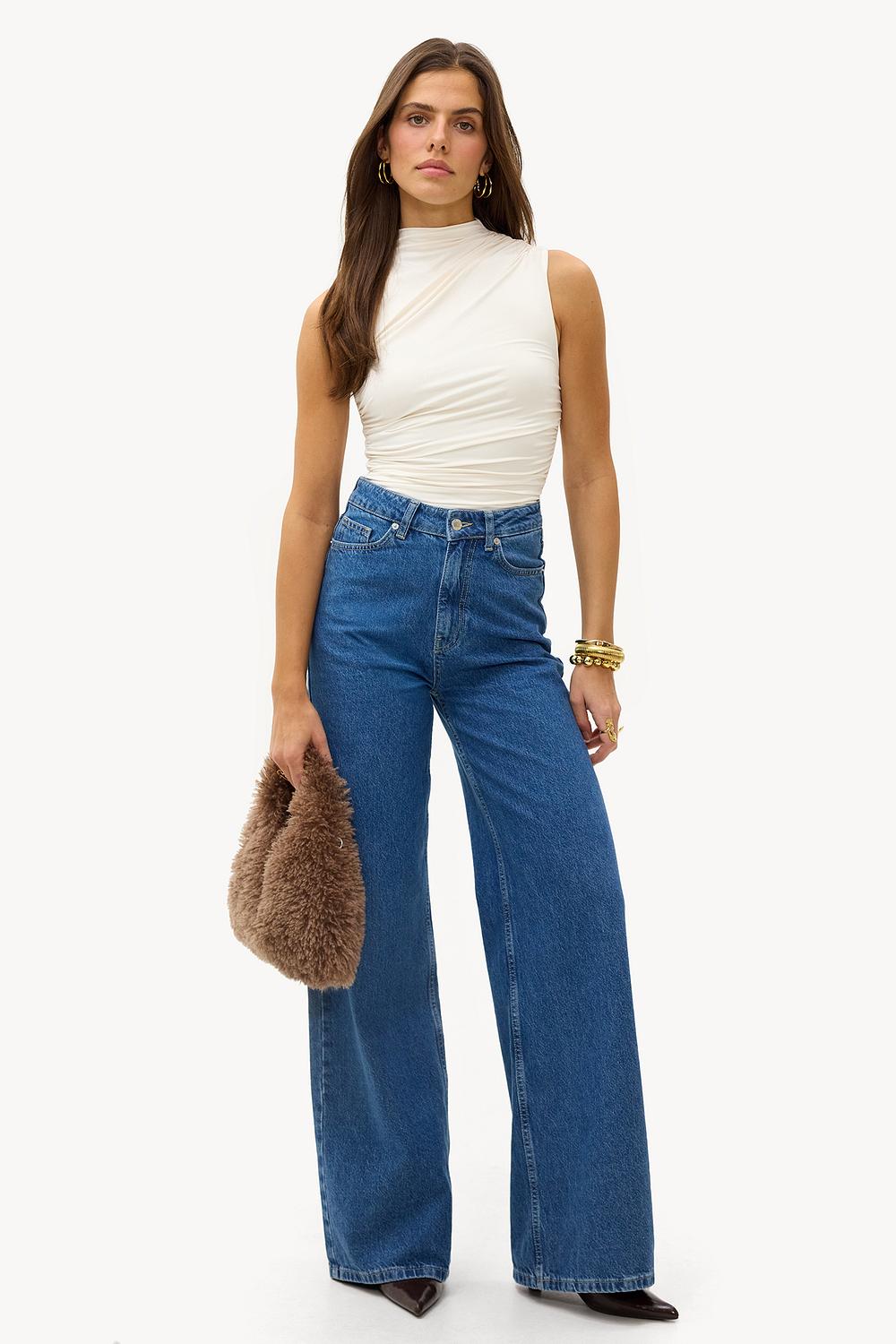White turtleneck top EUR 25.99This white sleeveless top features a chic turtleneck and bodycon fit that perfectly accentuates the shape. The draped details on the side create a luxurious look with subtle texture. The sleek fit makes this top an ideal basic for any wardrobe. Style this top with high-waisted wide leg jeans for a classy casual look.
