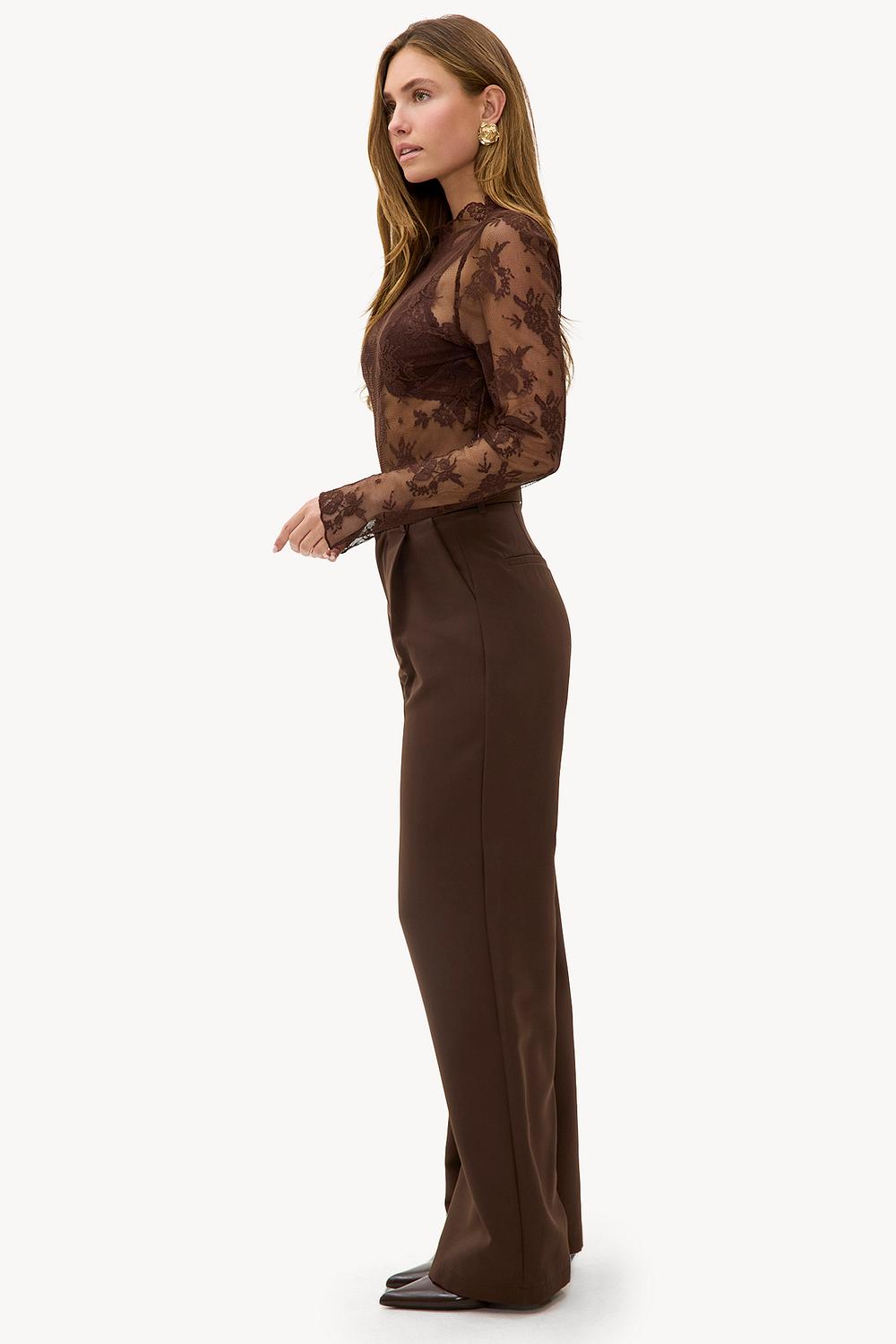 Brown pantaloons EUR 49.99This brown wide leg trousers have a high-waisted fit with tailored pleats for a sophisticated look. The straight legs and elastic polyester blend ensure a perfect fit. Style these trousers with the matching blazer for a powerful co-ord look during office days.