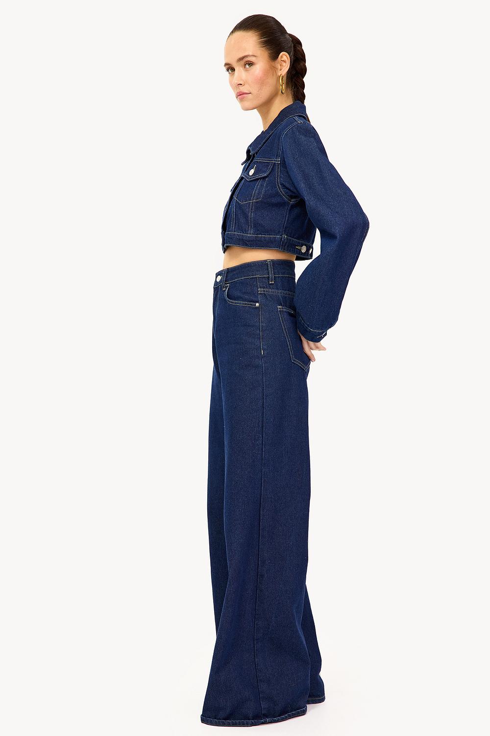 These indigo 5-pocket wide leg jeans feature a statement extra wide fit with a high-waisted design. The classic denim details like the contrasting stitches give a cool twist to these jeans. Style these jeans with the matching cropped denim jacket for an on-trend co-ord look.