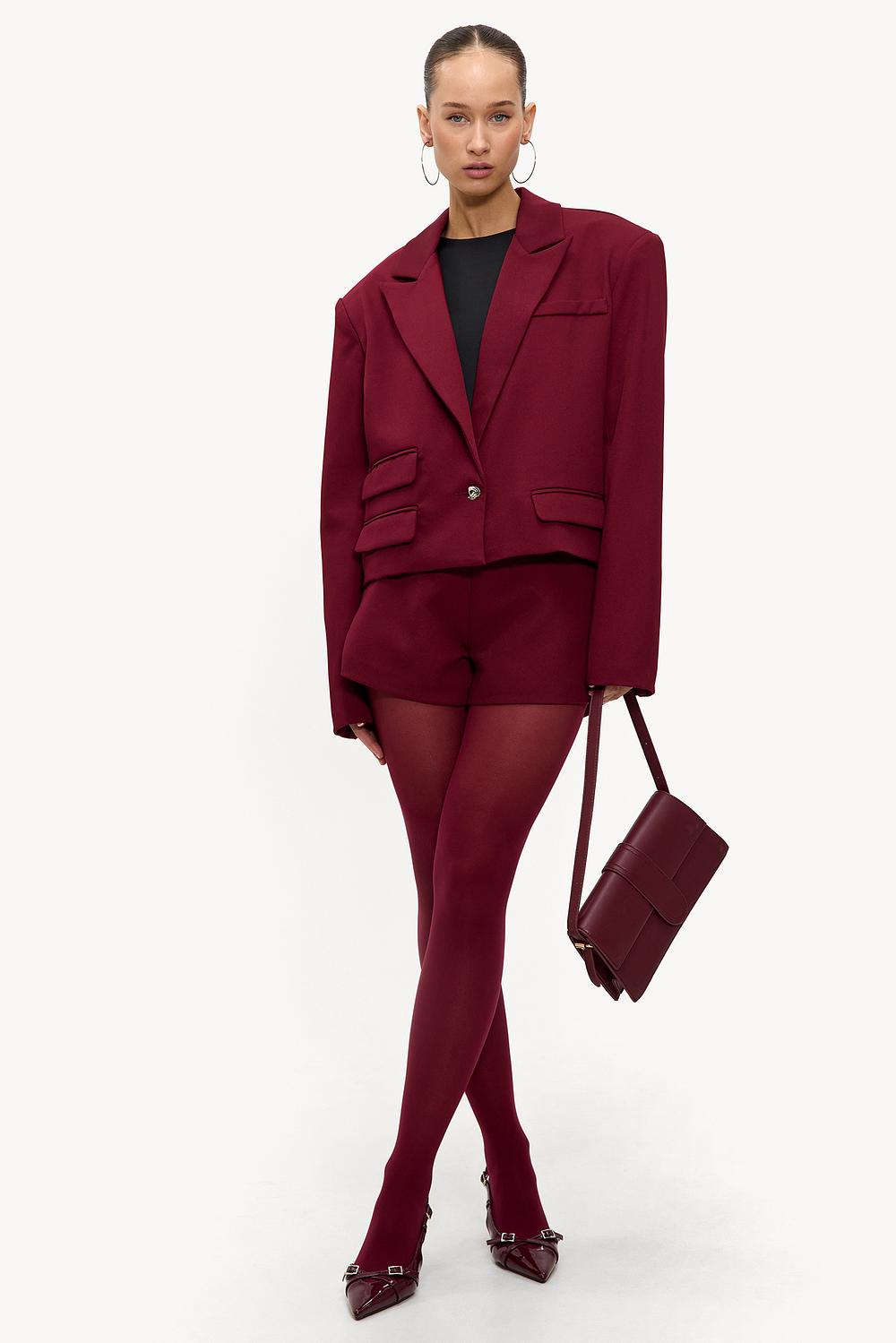 Burgundy cropped blazer EUR 69.99This burgundy blazer has a tailored fit with statement gold buttons for a luxurious twist. The classic lapels and functional pockets give this blazer a chic professional look. Style this blazer with the matching shorts for a powerful co-ord look.
