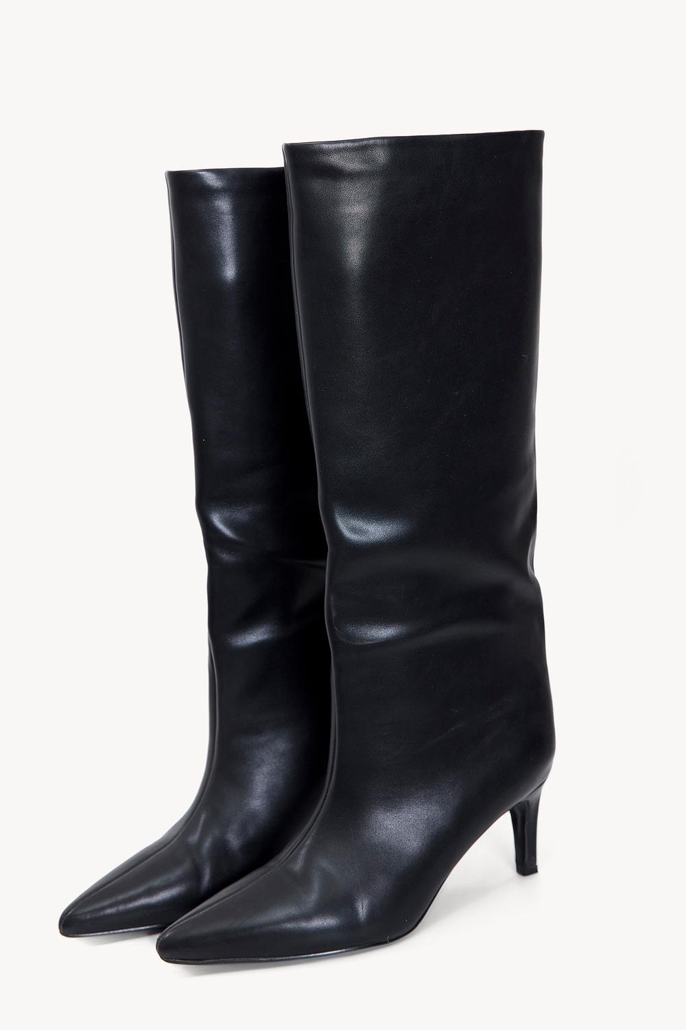 Black boots with heel EUR 65.99These black knee-high boots feature a leather-look finish with a pointed toe for a chic appearance. The high fit with a stiletto heel of approximately 8 cm creates a statement look. The sleek fit and luxurious vegan leather give these boots a modern twist. Style them with an oversized blazer and tights for an office-to-evening look.