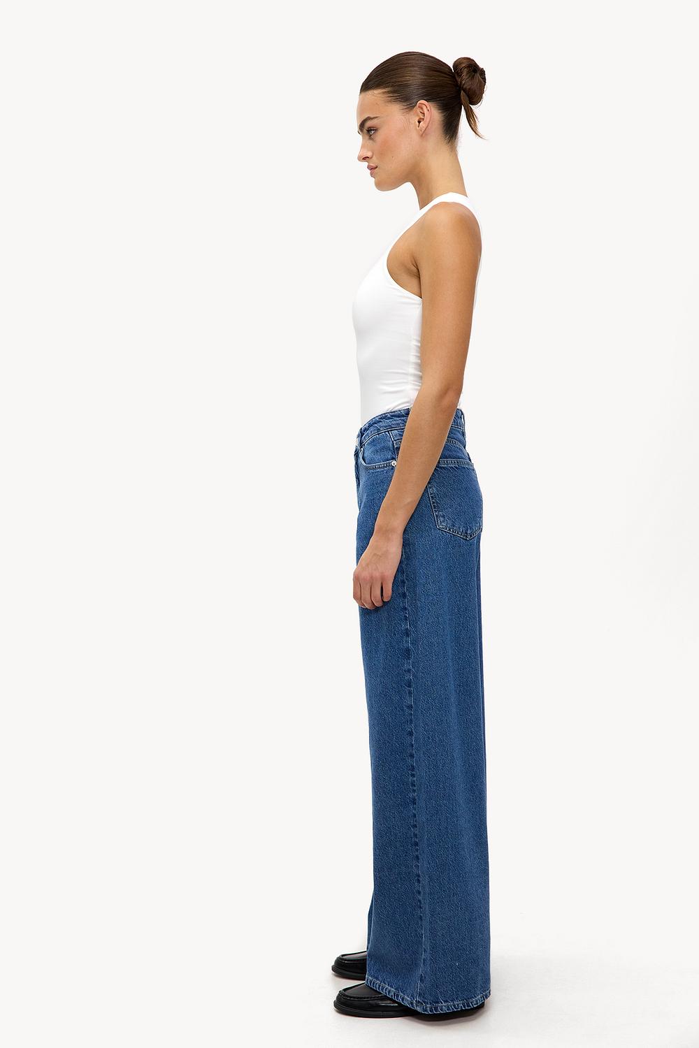 Blue jeans EUR 59.99These 5-pocket wide leg jeans have a classic mid blue wash and high-waisted fit. The wide legs create a relaxed look with a modern twist. The 100% cotton quality ensures comfort and durability. Style these jeans with a cropped top and statement jacket for a cool casual look.