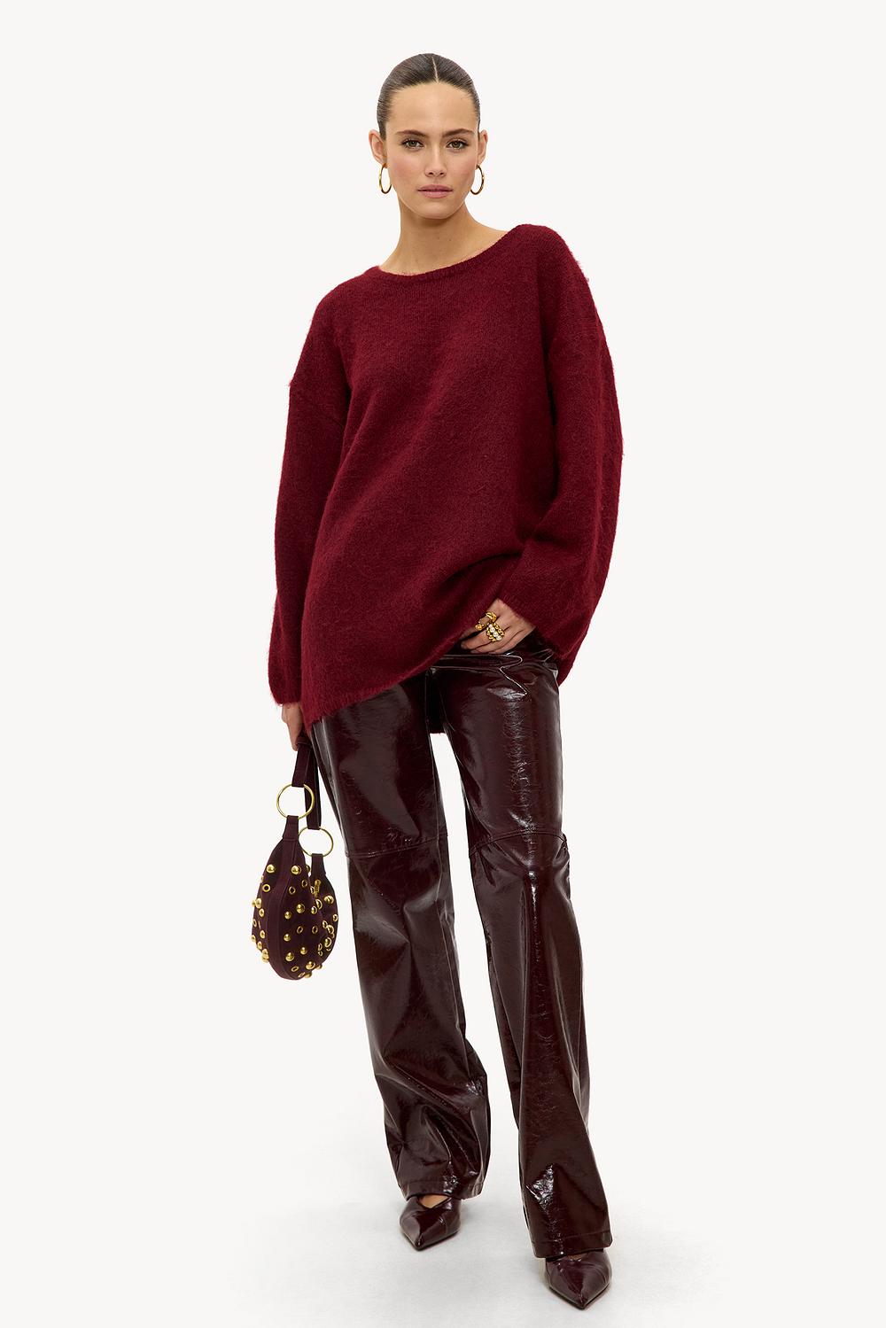Bordeaux sweater EUR 49.99This burgundy knit jumper has a luxurious soft texture and oversized fit for ultimate comfort. The off-shoulder design with a relaxed fit creates an effortless chic look. The wool blend ensures a warm and high-quality finish. Style this jumper with leather-look trousers for a statement outfit.
