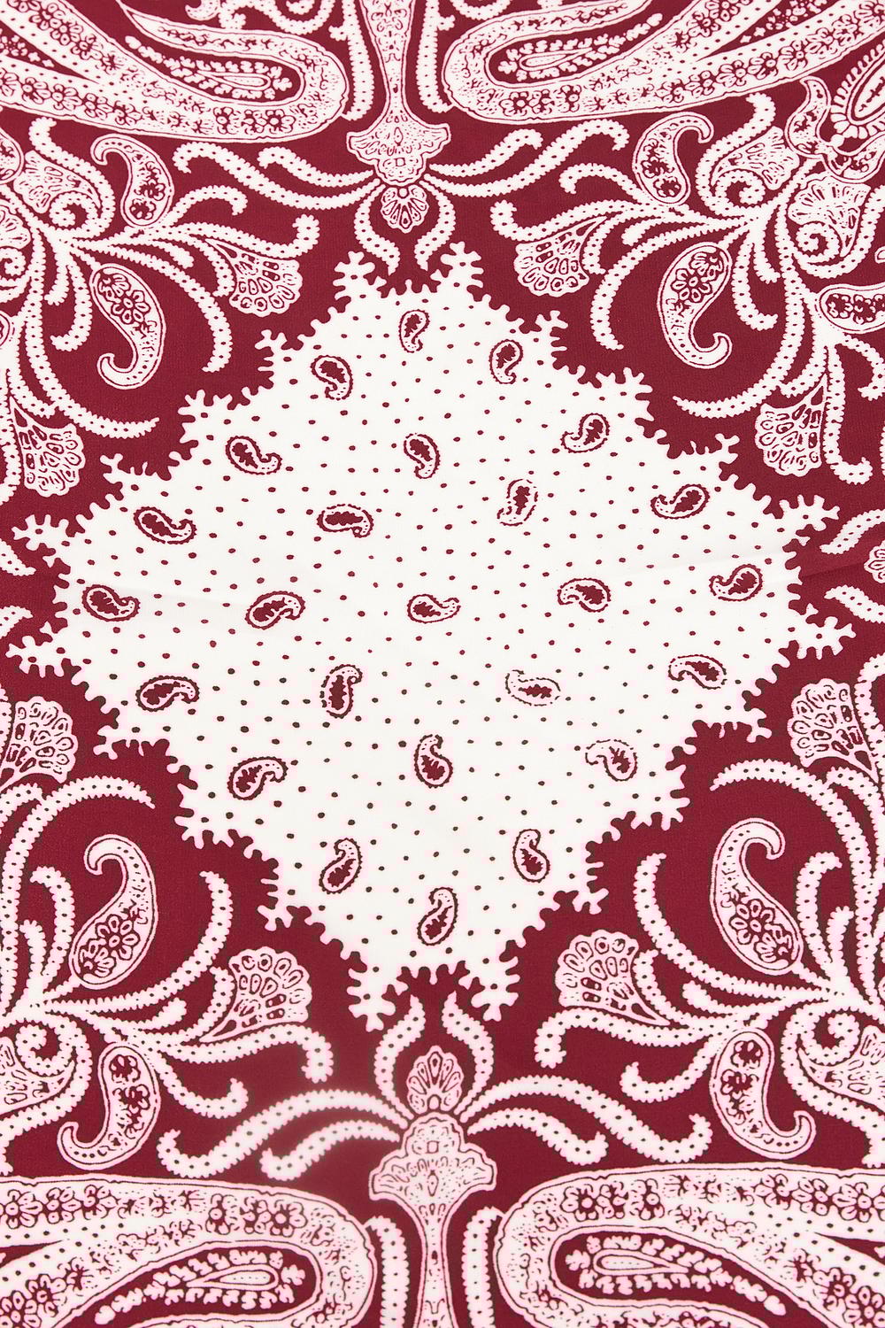 This burgundy scarf features a classic paisley pattern with white accents for a timeless look. The square shape makes this scarf perfect to wear as a statement accessory. The burgundy color effortlessly combines with different outfits. Style this scarf around your neck or as a headscarf for a chic finishing touch.