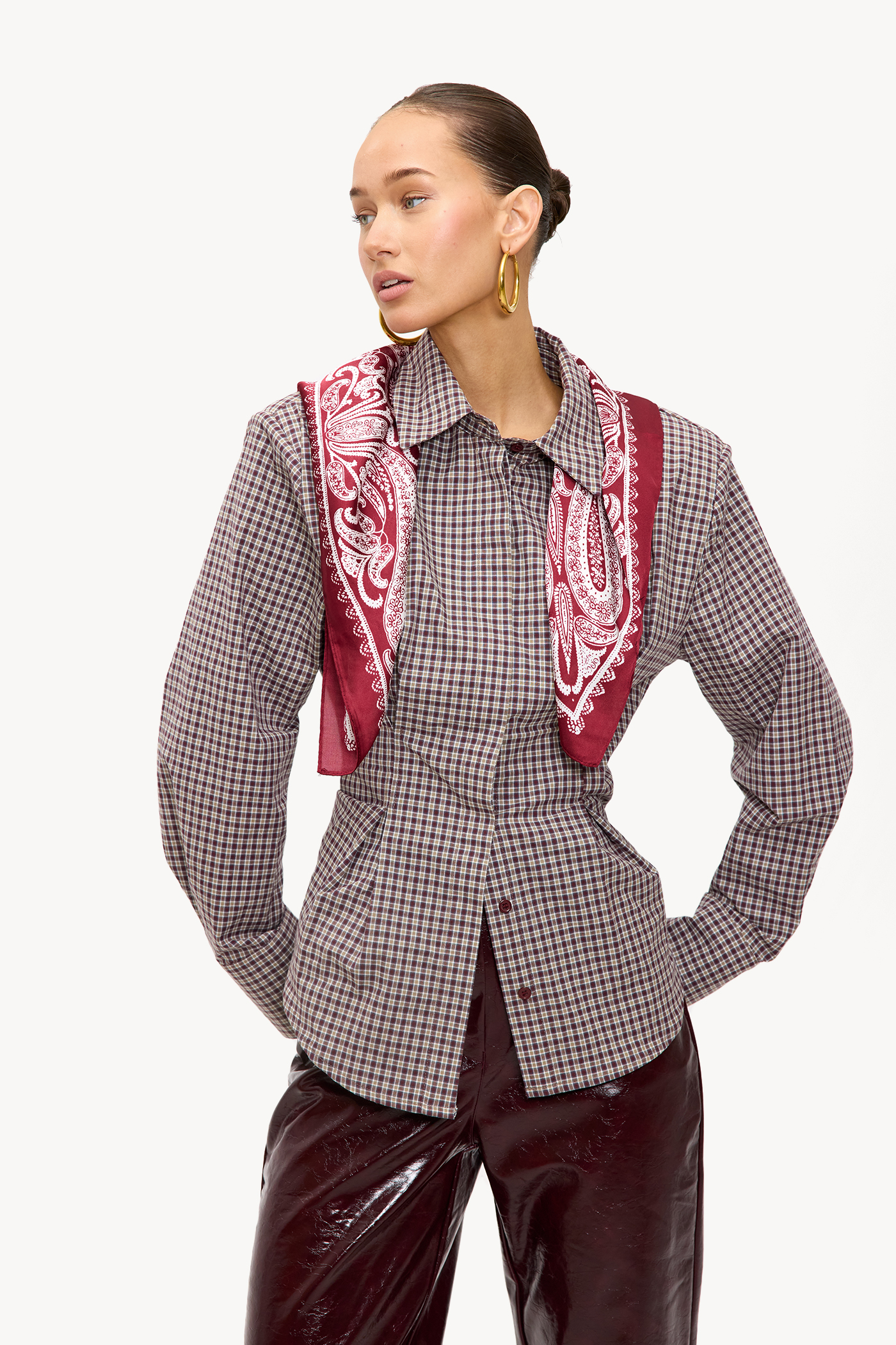 Red scarf EUR 7.99This burgundy scarf features a classic paisley pattern with white accents for a timeless look. The square shape makes this scarf perfect to wear as a statement accessory. The burgundy color effortlessly combines with different outfits. Style this scarf around your neck or as a headscarf for a chic finishing touch.