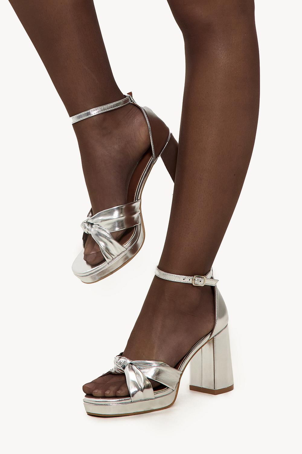 Silver block heels EUR 39.99These silver platform sandals have a metallic finish with striking knot details over the foot. The chunky block heel and adjustable ankle strap ensure comfort and stability. The twisted straps give these heels a luxurious twist that is perfect for a dinner date or girls' night out.