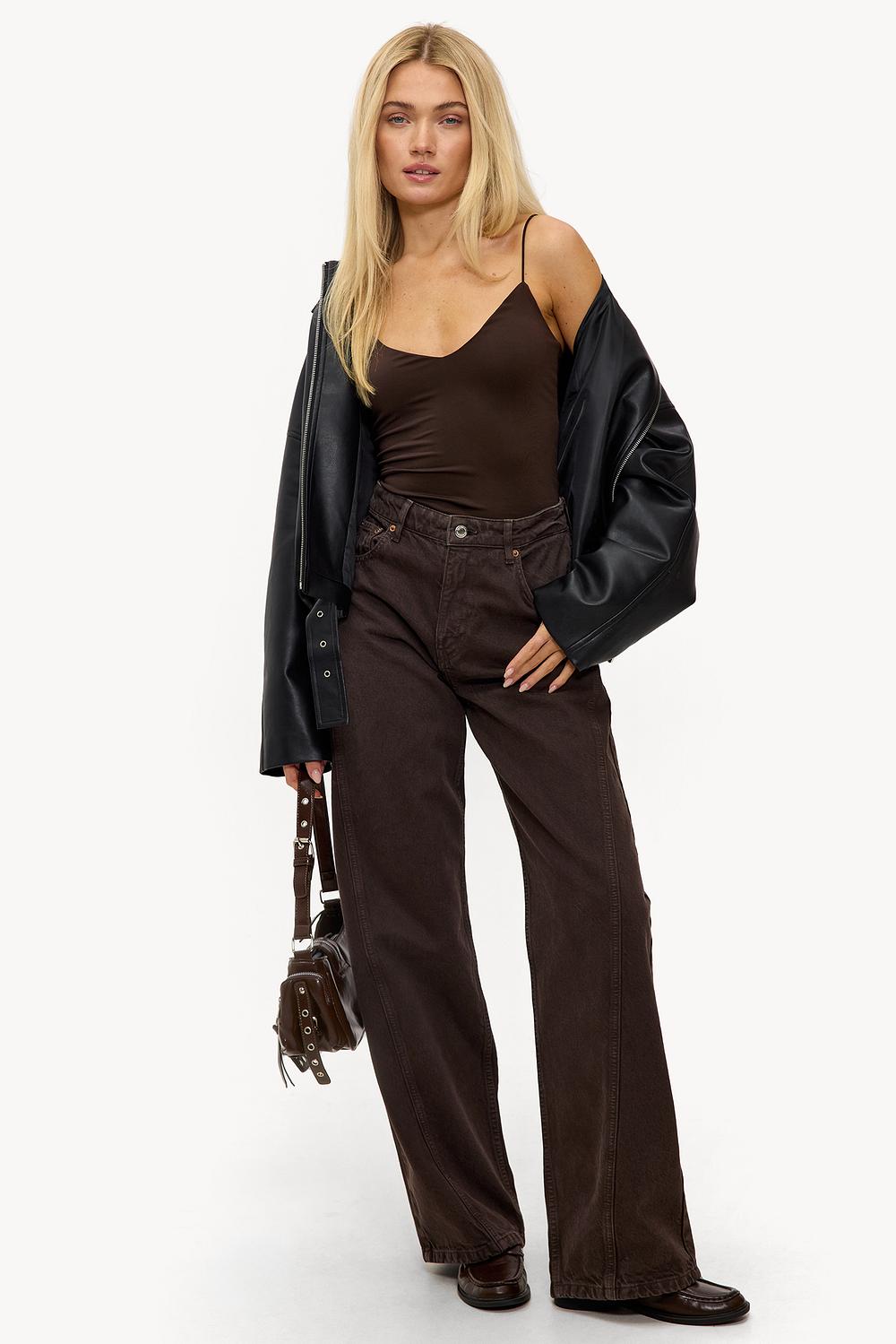 Brown cami top EUR 14.99This brown bralette top features thin spaghetti straps and a deep V-neck for a chic look. The bodycon fit subtly accentuates the shape. The adjustable straps ensure a perfect fit. Style this top with high-waisted wide leg jeans for an effortless casual outfit.