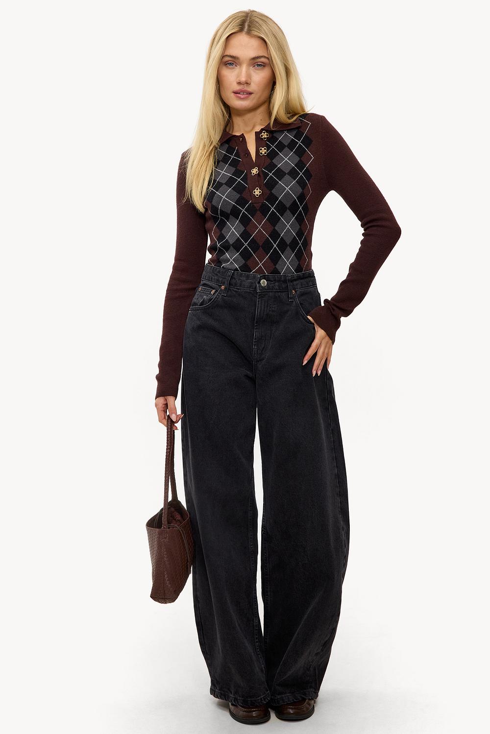 Brown sweater with checks and gold buttons EUR 49.99Model info: Model is 174 cm and wears size XS.