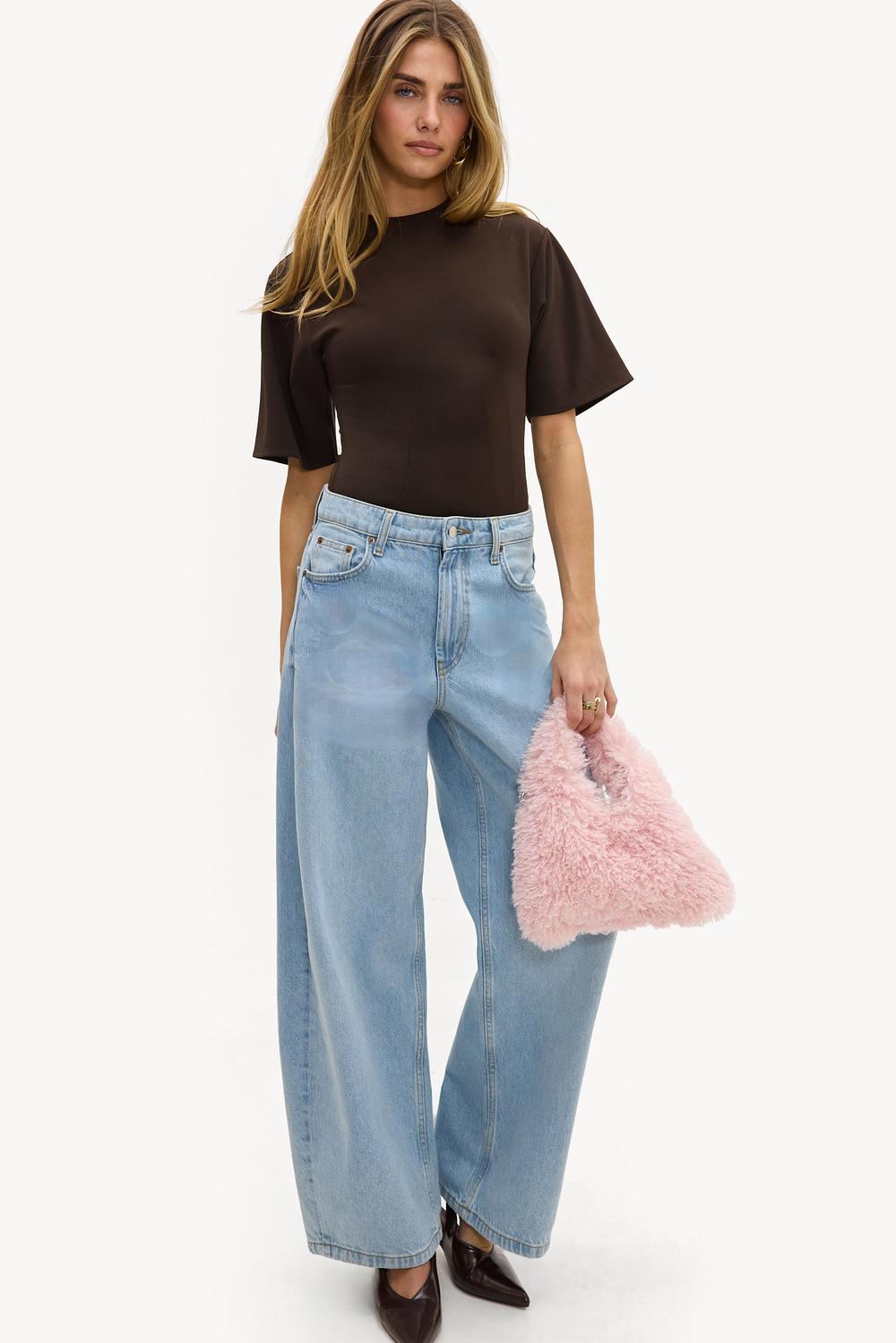 Dark brown bodysuit EUR 25.99This dark brown bodysuit features a chic mock neck design with short sleeves for a sophisticated look. The sleek fit elegantly accentuates the shape. The polyester blend ensures comfort and a perfect fit. Style this bodysuit with high-waisted jeans for an effortless casual look.