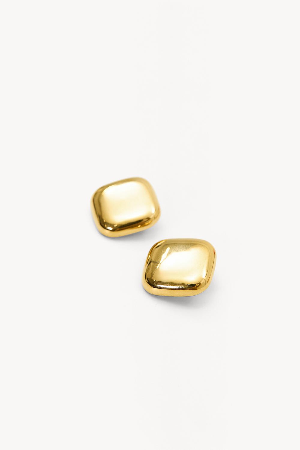 Gold earrings EUR 12.99These gold statement earrings have a striking square shape with a luxurious glossy finish. The chunky design and gold-plated stainless steel quality ensure a durable and chic appearance. The bold shape makes these earrings perfect for both office days and a dinner date.