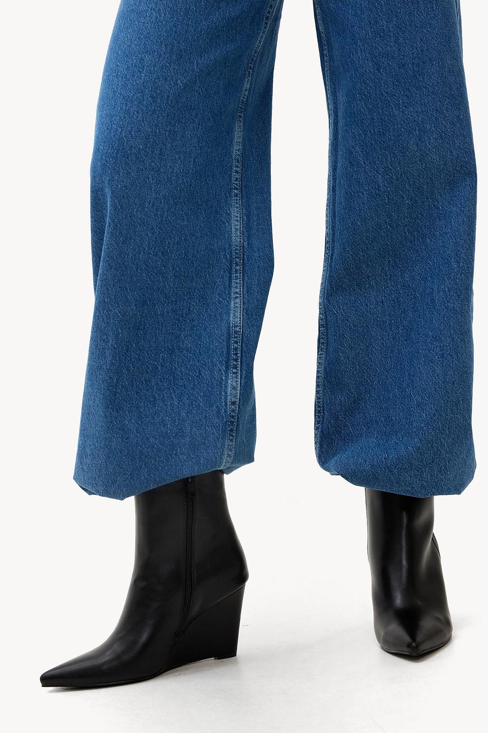 Black boots EUR 49.99These black ankle boots feature a pointed toe and wedge heel for a chic twist. The leather-look finish with subtle stitching gives these boots a luxurious appearance. The sleek wedge ensures comfort and a modern shape. Style these boots with wide leg jeans for an on-point look.