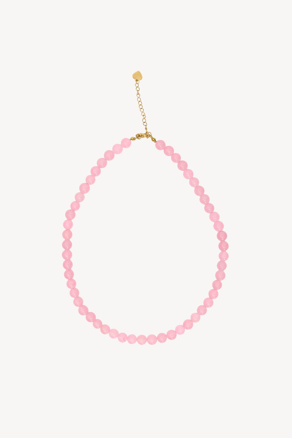 This gold-colored beaded necklace features delicate beads in pink and yellow tones for a statement look. The adjustable closure with an extension chain ensures a perfect fit. The 100% stainless steel gold-plated finish gives this accessory a luxurious appearance. Style this necklace solo or layer it with other necklaces for an on-trend look.