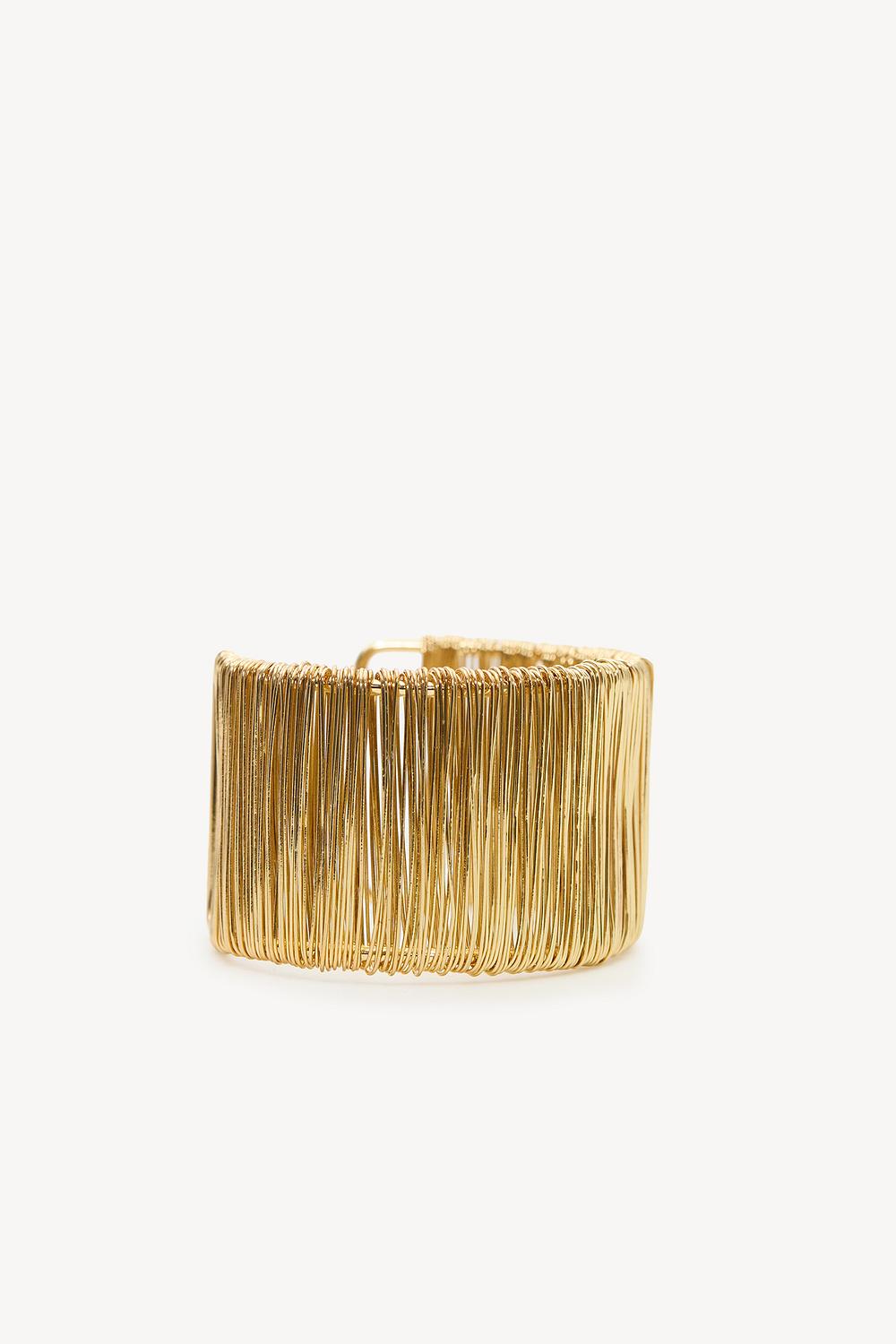 Gold bracelet EUR 17.99This gold statement bracelet features a striking textured design with vertical lines for a luxurious look. The wide cuff-style with an open design creates a modern twist on classic jewelry. The gold-plated stainless steel ensures durability and a lasting golden shine. Style this bracelet solo for a minimalistic look or pair with other gold accents for a layered effect.