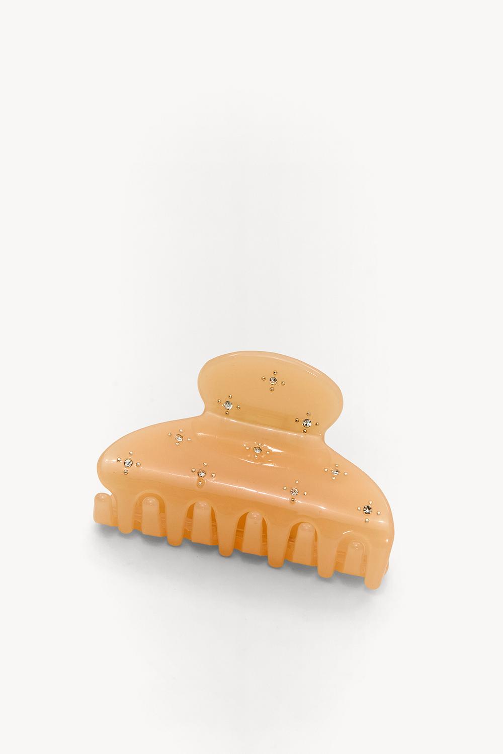 Orange hair clip with rhinestones EUR 7.99This orange hair clip features subtle gold studs all over for a luxurious touch. The claw clip design ensures a strong grip and keeps your hair effortlessly in place. Perfect to complete your look with a chic accent.