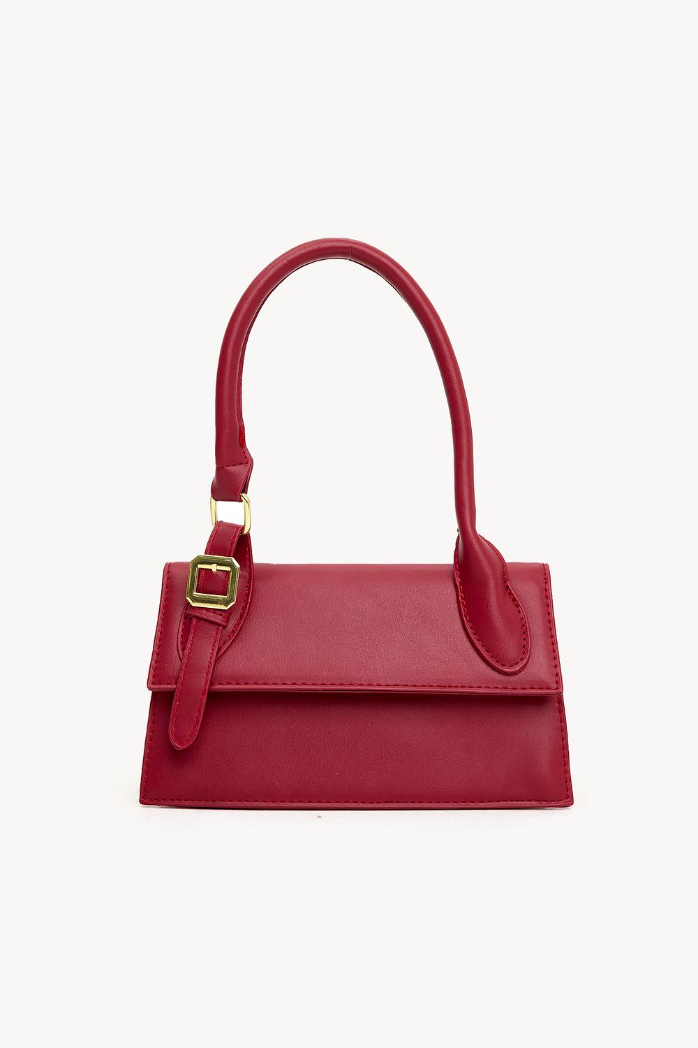 Bolso rojo 39,99 €Este mini bolso burdeos presenta un diseño limpio con detalles de herrajes dorados. La forma rectangular compacta con cierre de solapa y correa ajustable garantiza un aspecto elegante. El bolso viene con una correa adicional para un uso versátil. Combina este mini bolso con un traje de mezclilla a medida para un look de oficina sofisticado.