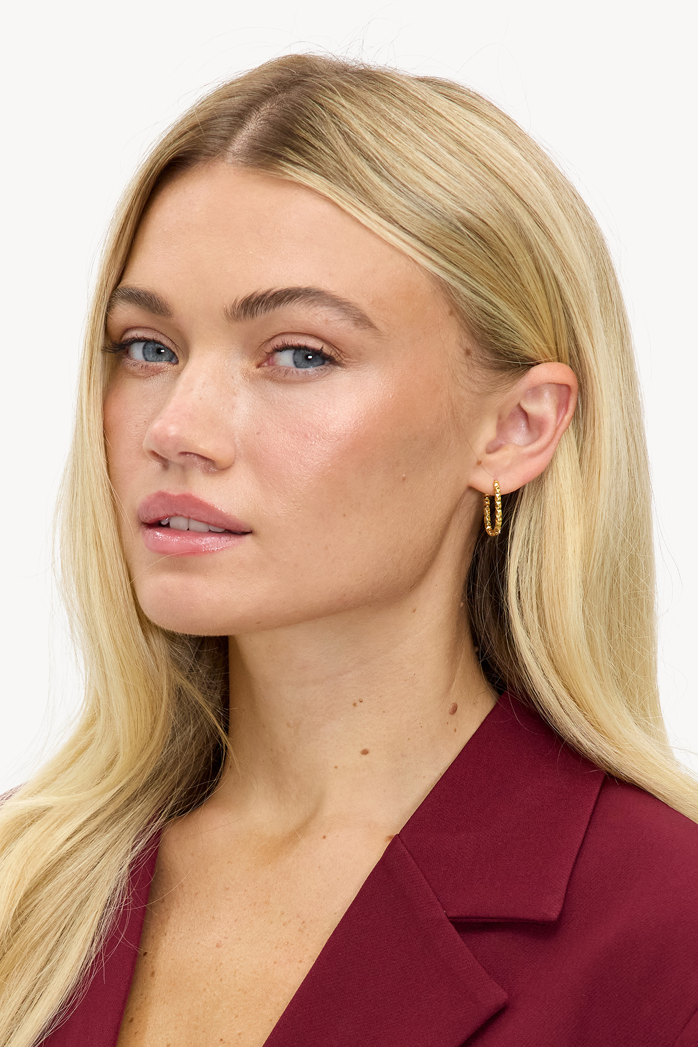 Pendientes de oro 9,99 €Estos pendientes de aro dorados presentan un diseño texturizado llamativo con detalles sutiles alrededor. La forma ovalada compacta crea un giro moderno en el clásico pendiente de aro. El acero inoxidable de alta calidad con baño de oro proporciona un aspecto lujoso que complementa perfectamente tanto los atuendos casuales como los elegantes.