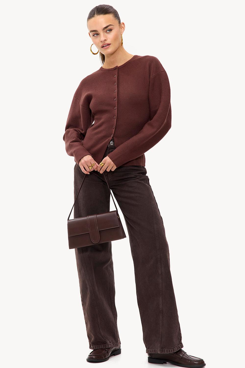 Chaleco marrón. 49,99 €Esta chaqueta marrón presenta un diseño clásico de botones con cuello redondo y mangas largas. La mezcla de viscosa suave garantiza comodidad y una apariencia lujosa. El ajuste relajado con puños acanalados crea un look atemporal que combina perfectamente con conjuntos tanto casuales como elegantes. Estiliza esta chaqueta sobre una camiseta básica con jeans de pierna ancha para un look diario sin esfuerzo.