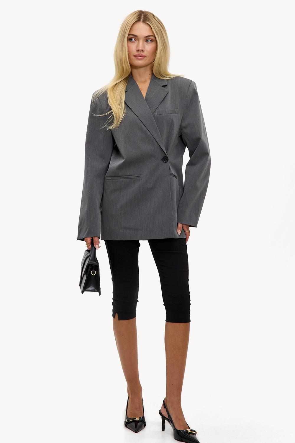 Blazer gris 49,99 €Esta blazer gris de doble botonadura tiene un ajuste oversize con solapas clásicas y botones llamativos. El ajuste entallado con detalles de bolsillos crea un look de negocios chic. La mezcla de poliéster asegura comodidad y una apariencia lujosa. Combina esta blazer con jeans ajustados negros y tacones para un look de oficina sofisticado.