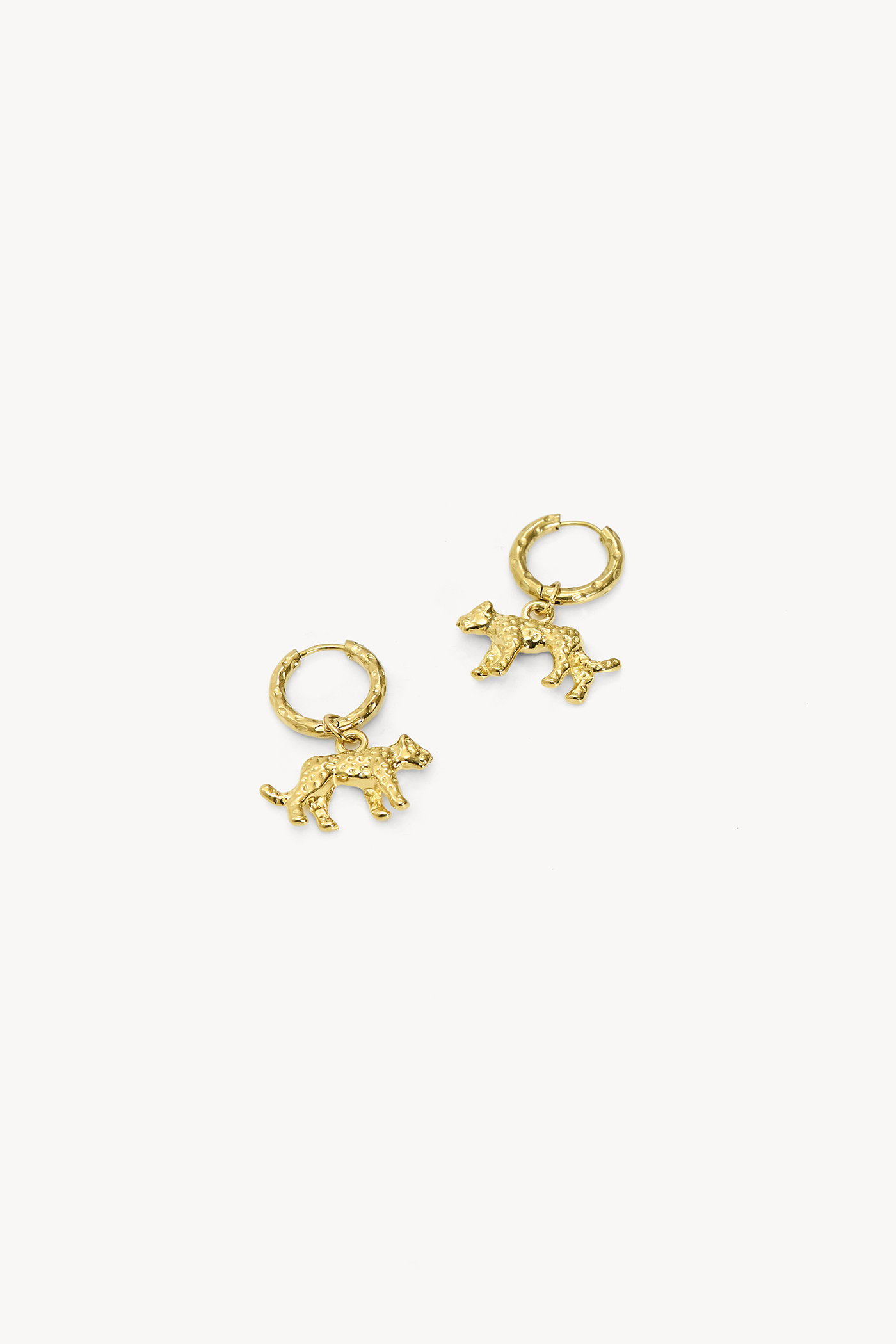 Pendientes dorados con colgante de tigre 14,99 €Estos pendientes de aro dorados cuentan con un llamativo charm de tigre para un look llamativo. Los pequeños aros con detalles de tigre colgantes crean un giro atrevido a tu juego de accesorios. El acero inoxidable chapado en oro asegura durabilidad y un acabado lujoso. Combina estos pendientes con una chaqueta de cuero para una apariencia rock-chic.