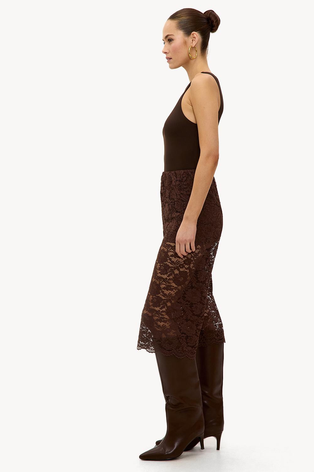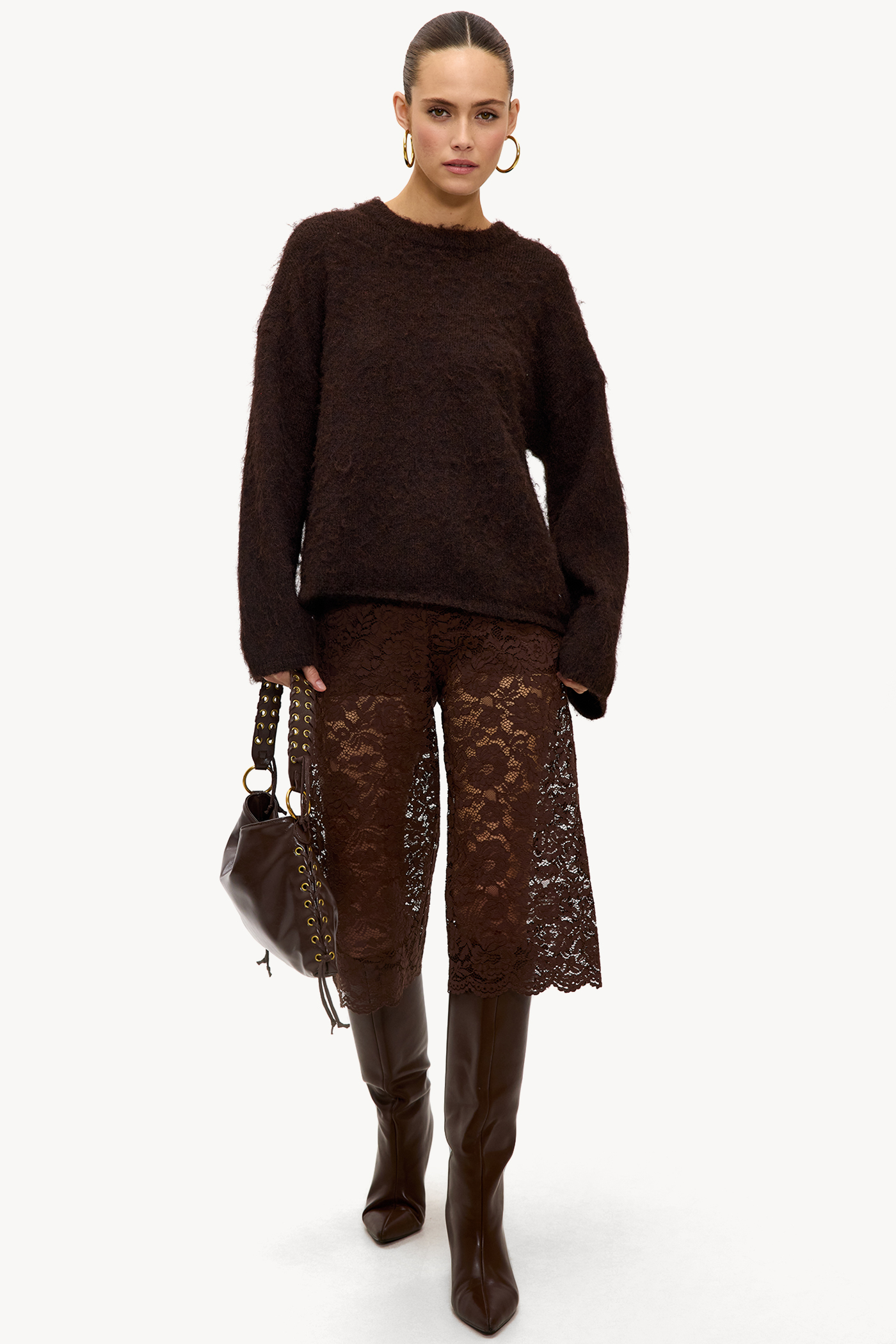 Short marrón de encaje 39,99 €Estos shorts de encaje marrón cuentan con un diseño de encaje lujoso para un look sofisticado. La longitud midi con detalles sutiles y transparentes crea una forma elegante. El ajuste de cintura alta acentúa la cintura de manera chic. Combina estos shorts con el top a juego para un look coordinado impresionante durante una cita para cenar.