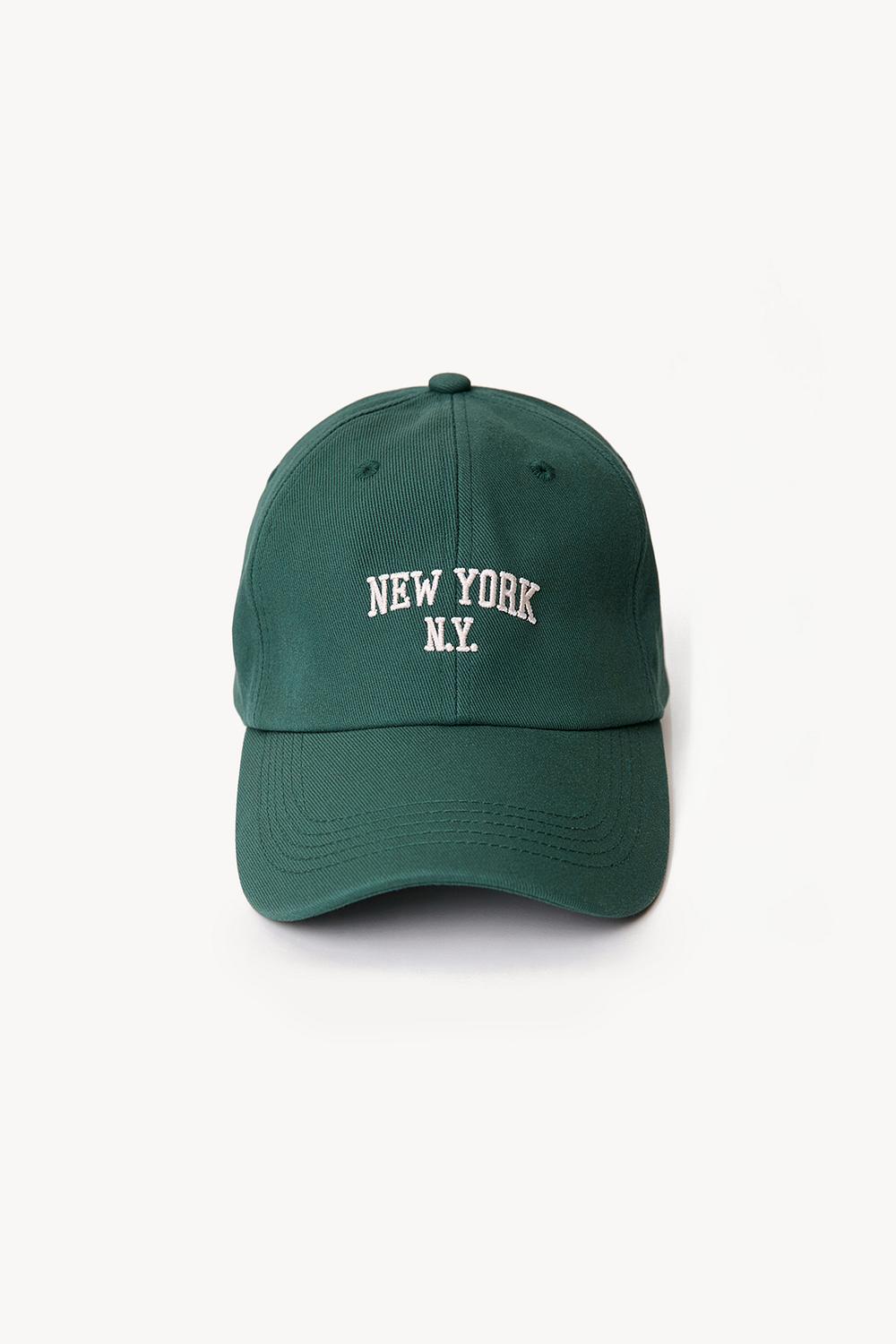 Esta gorra de béisbol verde oscuro presenta un estampado 'NEW YORK N.Y.' en la parte delantera para un look urbano. La visera curva clásica y el cierre ajustable aseguran un ajuste perfecto. La calidad 100% algodón proporciona comodidad y una apariencia casual. Combina esta gorra con un crop top a juego para un look deportivo athleisure genial.