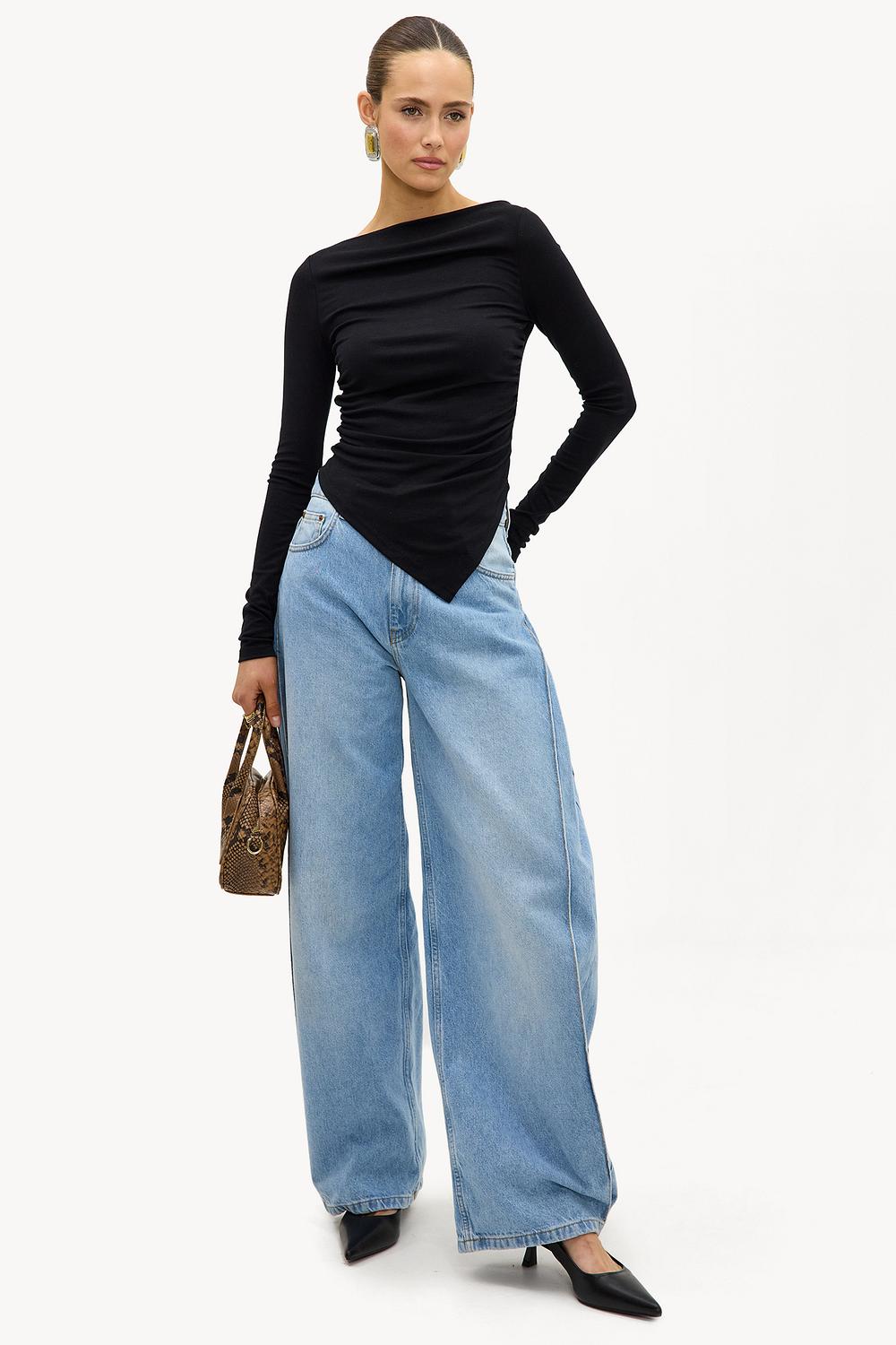 Top negro de manga larga 29,99 €Esta camiseta negra de manga larga tiene un ajuste ceñido con un fruncido sutil en el lateral para una forma favorecedora. La mezcla de viscosa suave garantiza comodidad y un aspecto lujoso. Las mangas largas y el cuello redondo le dan a esta prenda básica un toque chic. Combina esta camiseta con jeans de pierna ancha y botas para un look casual sin esfuerzo.