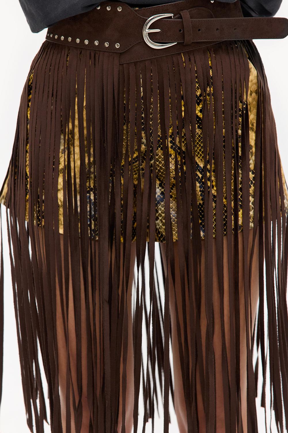 Cinturón marrón con aspecto de ante, flecos y tachuelas. 39,99 €Este cinturón marrón de imitación de ante presenta tachuelas llamativas por todas partes y flecos llamativos para un look western atrevido. El ajuste ancho con detalles de flecos en movimiento crea un ambiente fresco listo para el festival. La hebilla plateada y las tachuelas le dan a este cinturón un toque rock-chic. Combina este cinturón llamativo con una camiseta oversize y botas vaqueras para un look western completo.