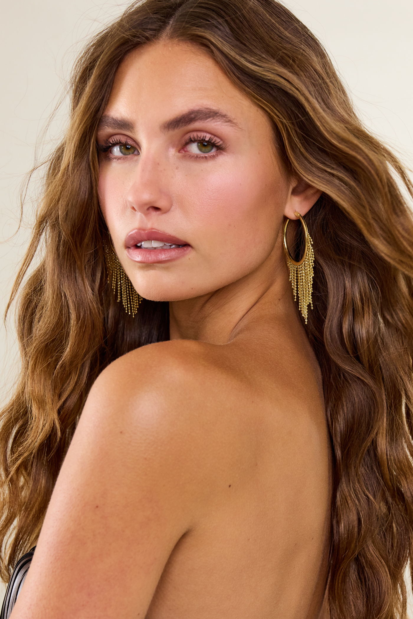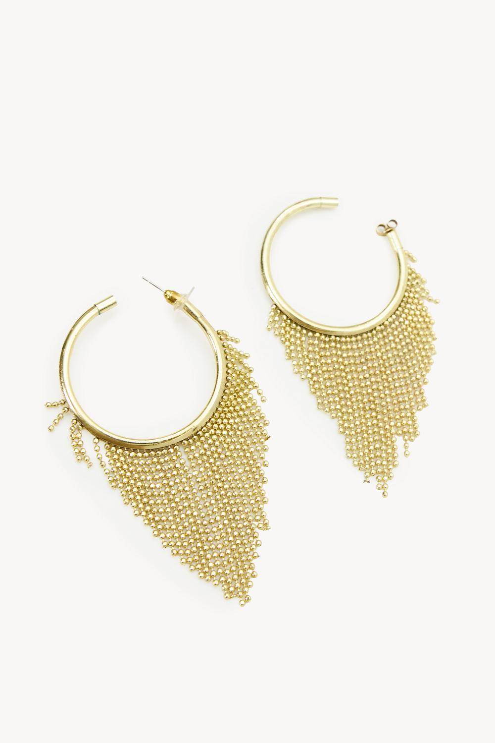 Pendientes de aro dorados con flecos de cuentas 14,99 €Estos pendientes de declaración dorados presentan un diseño de cota de malla llamativo con flecos dramáticos. Los pendientes de aro con detalles de cadena móviles crean un aspecto lujoso. El acabado dorado le da a estos pendientes un toque chic para una cena icónica.