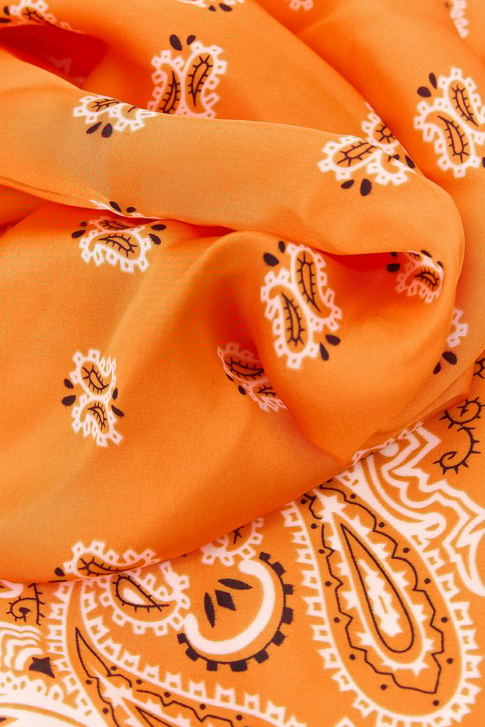 Este pañuelo naranja presenta un patrón clásico de cachemira con detalles contrastantes. El pañuelo cuadrado combina diferentes estampados para un look llamativo. La suave calidad del poliéster asegura comodidad y una buena caída. Estiliza este pañuelo como un pañuelo para la cabeza o úsalo como accesorio con un atuendo casual.