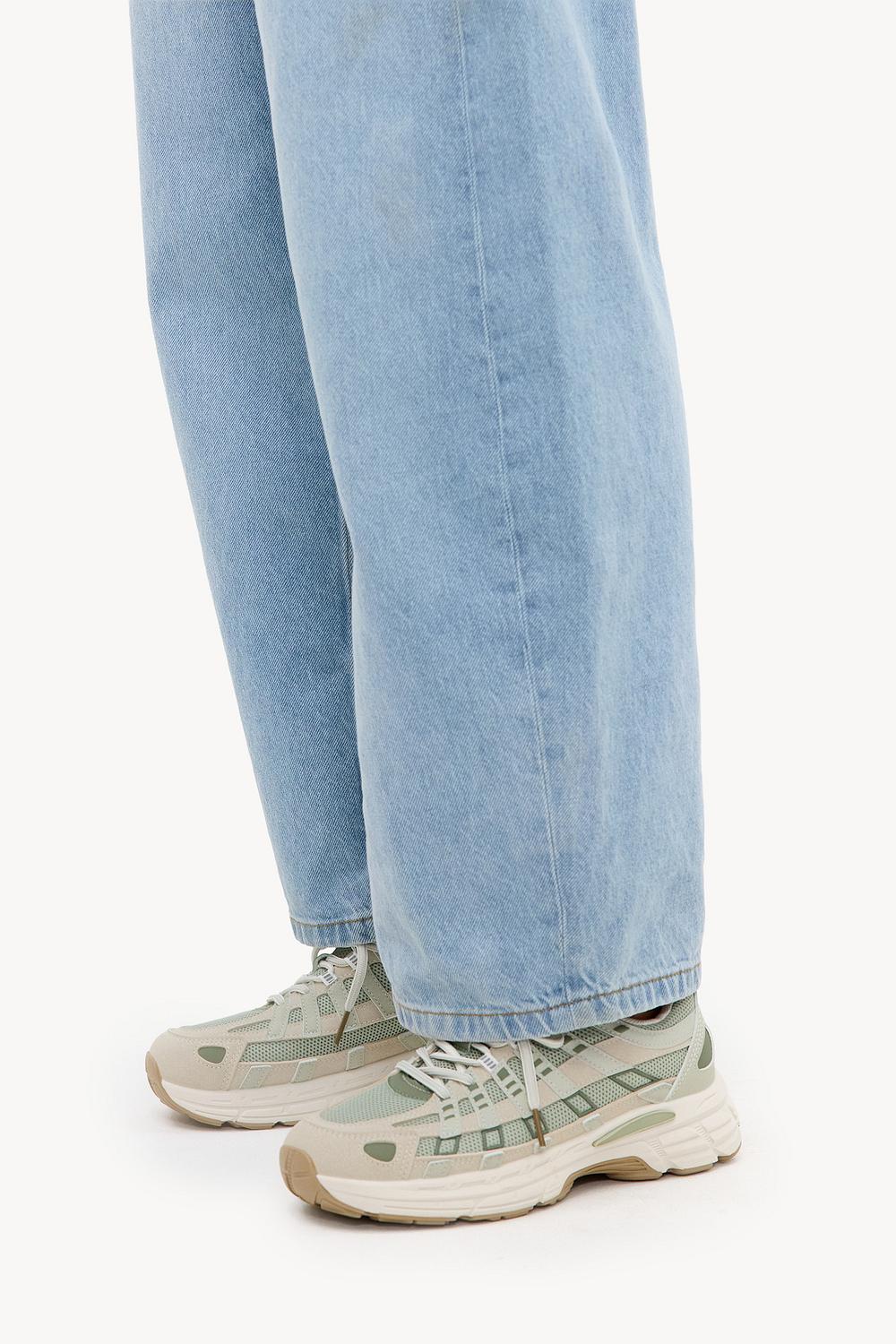 Estas zapatillas chunky verde claro presentan un diseño retro de running con detalles de malla y tipo ante. La suela gruesa con tecnología de amortiguación de aire garantiza comodidad durante los días largos. La combinación de colores neutros con acentos beige hace que estas zapatillas sean perfectas para looks casuales. Combínalas con jeans de pierna ancha y un blazer oversize para un estilo streetwear fresco.