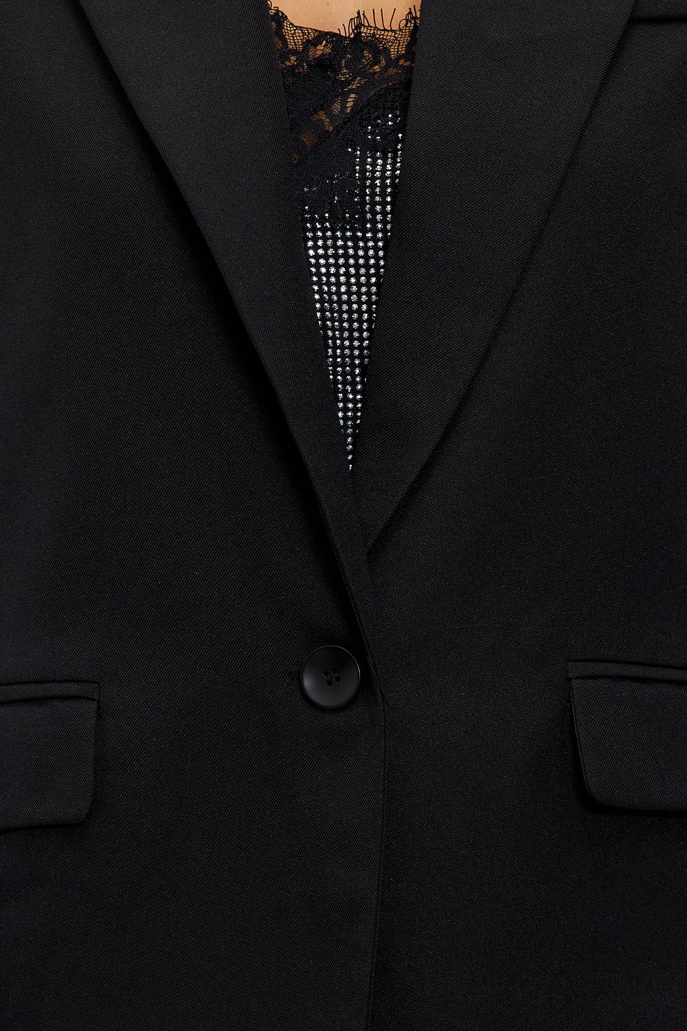 Esta blazer negra presenta un ajuste clásico con cierre de botones llamativo para un look elegante. El ajuste oversize con hombreras y bolsillos en el pecho crea una silueta poderosa. La mezcla de poliéster asegura comodidad y una apariencia lujosa. Combina este blazer con un top brillante y pantalones de pierna ancha para un atuendo de fiesta impresionante.