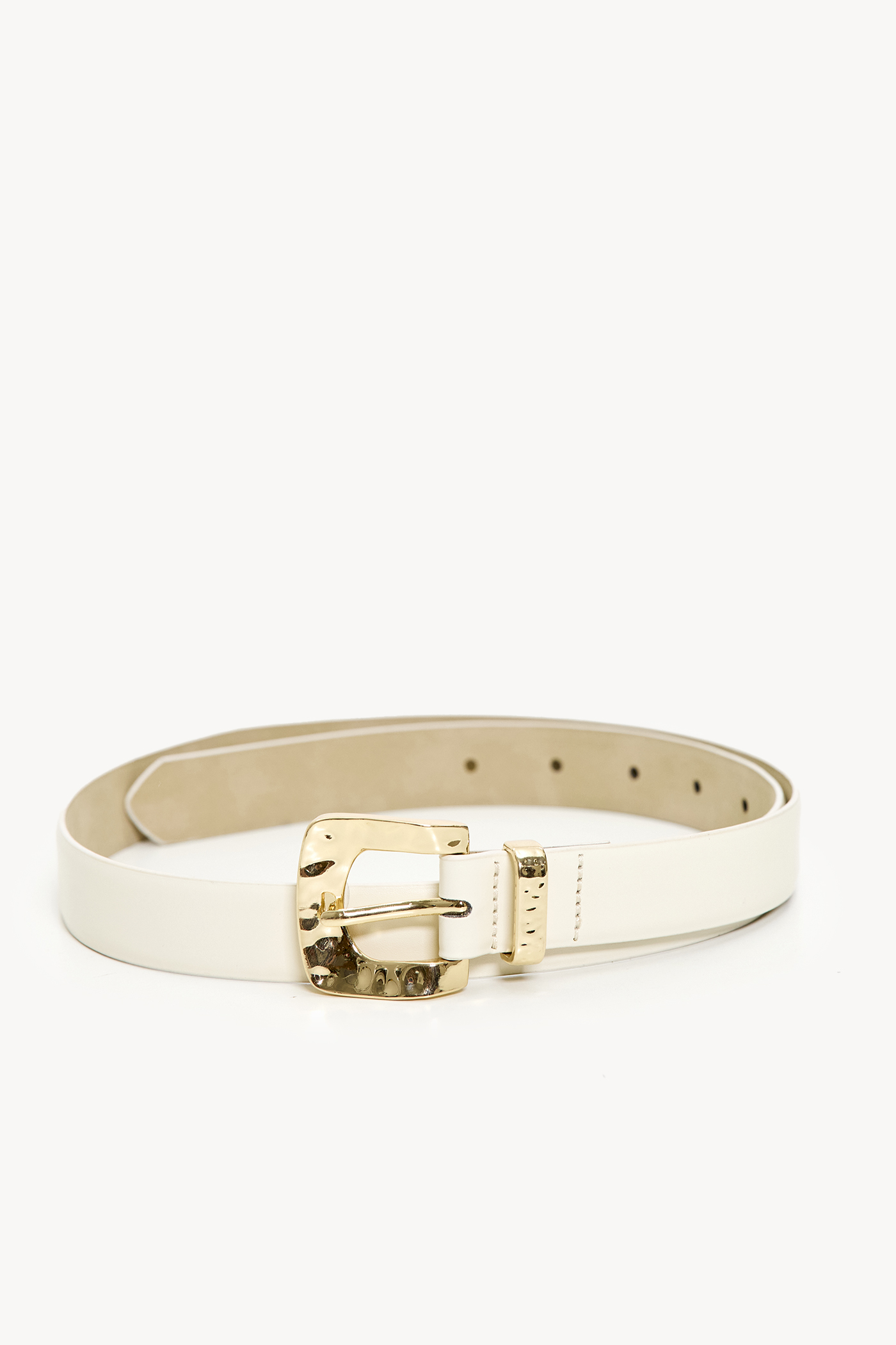 Off white belt 15,99 €Cette ceinture blanc cassé présente une boucle dorée avec des clous pour une touche luxueuse. La coupe basique avec des trous réglables assure un ajustement parfait avec n'importe quelle tenue. La qualité 100% polyuréthane donne à cette ceinture une finition aspect cuir. Portez cette ceinture avec un jean taille haute pour un look chic et décontracté.