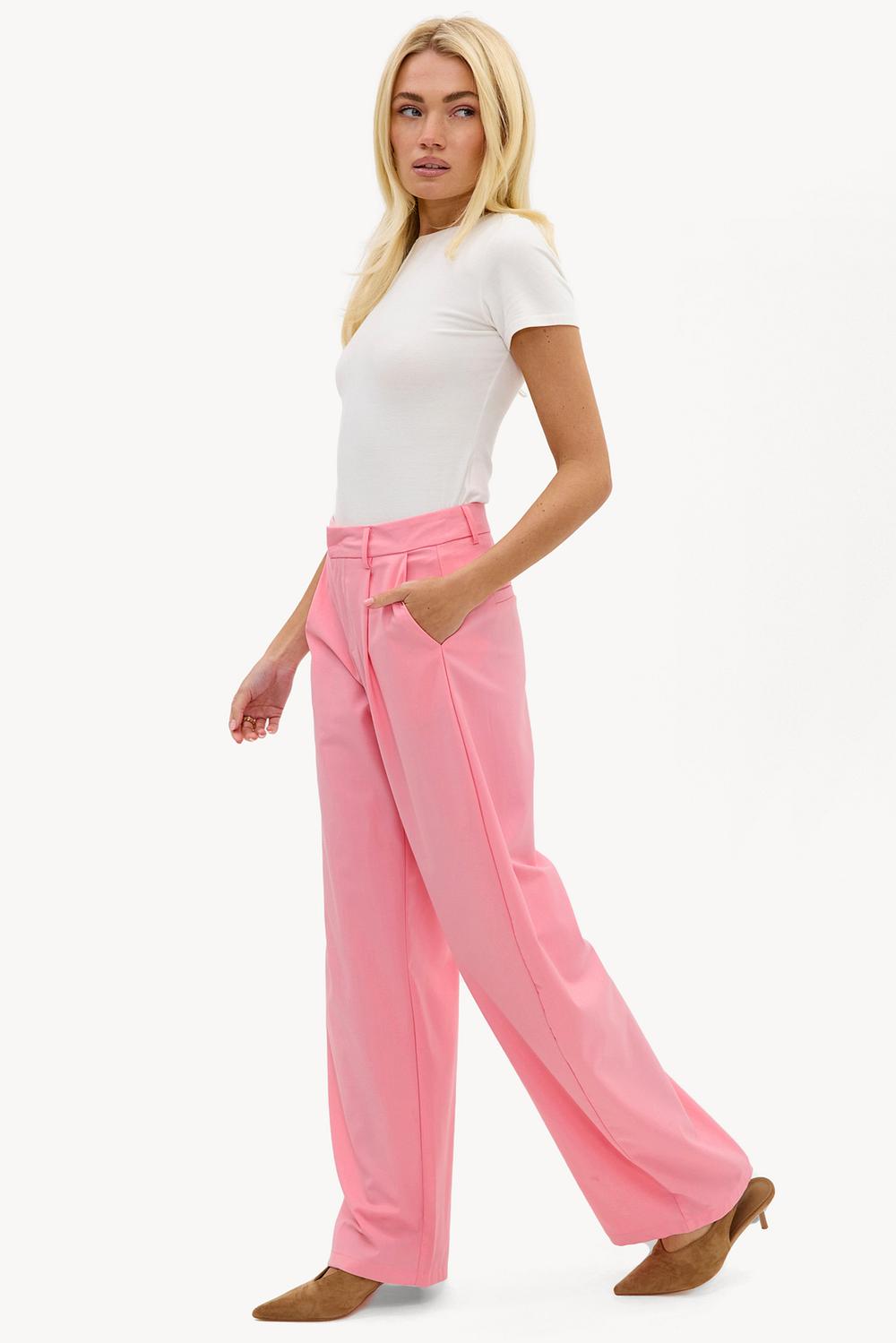 Ce pantalon large rose a une coupe ajustée avec des plis marquants à l'avant. La coupe taille haute avec jambes larges crée une silhouette chic pour un look sophistiqué. Le mélange de viscose doux assure confort et apparence luxueuse. Associez ce pantalon avec le blazer assorti pour un look coordonné éblouissant.