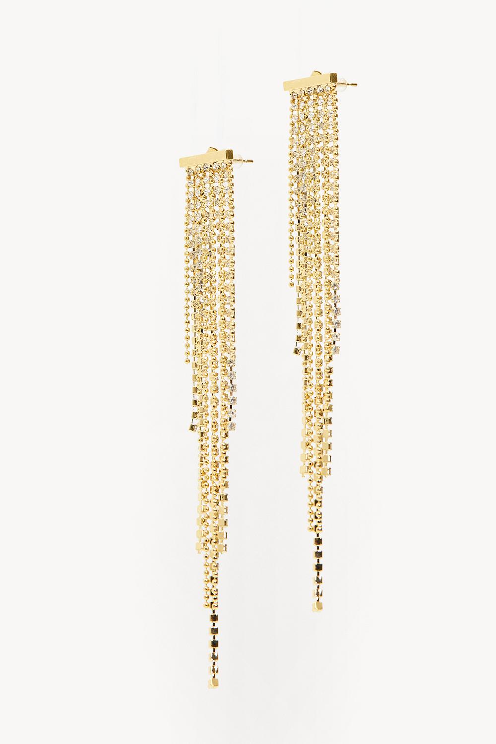 Boucles d’oreilles dorées avec strass 17,99 €Ces boucles d'oreilles dorées statement présentent un design saisissant avec des chaînes mobiles. La forme longue en goutte crée un effet dramatique qui attire immédiatement l'attention. La qualité du laiton assure une finition dorée luxueuse qui s'accorde parfaitement avec des tenues à la fois décontractées et chics. Coiffez ces boucles d'oreilles avec un chignon élégant pour mettre en valeur tout l'impact du design.