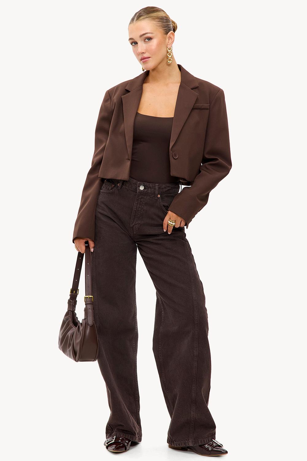 Ce débardeur marron présente des détails de perles en bois frappants sur les bretelles pour une touche bohème. La coupe moulante accentue élégamment la silhouette. La qualité stretch assure confort et ajustement parfait. Associez ce haut avec une mini-jupe blanche pour un look d'été frais.