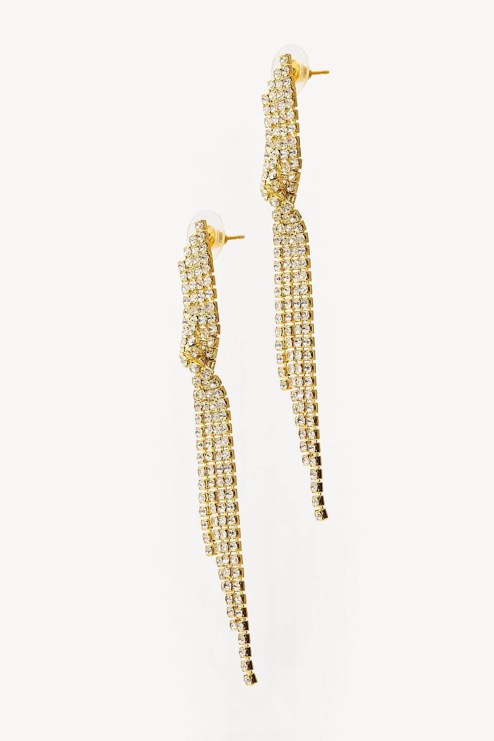 Boucles d’oreilles dorées avec strass 17,99 €Ces boucles d'oreilles dorées statement sont ornées de chaînes pour un look dramatique. La forme longue et pendante avec plusieurs chaînes dorées crée du mouvement et une apparence luxueuse. La finition plaquée or donne à ces boucles d'oreilles un éclat chic qui complète parfaitement un look de cheveux lissés en arrière.