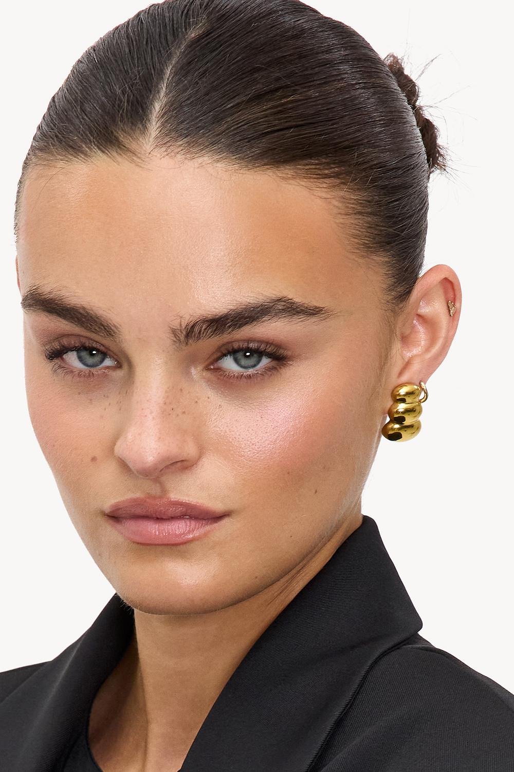 Boucles d’oreilles dorées 14,99 €Ces boucles d'oreilles dorées font sensation avec leur design audacieux composé de trois perles empilées. L'acier inoxydable plaqué or assure une apparence luxueuse et une durabilité. La forme massive crée instantanément un accent audacieux avec n'importe quelle tenue. Associez ces boucles d'oreilles à un blazer noir élégant pour un look de bureau chic.