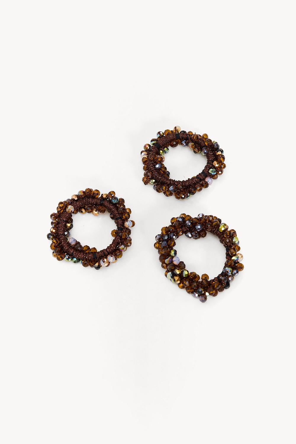 Élastiques marron avec perles (lot de 3) 9,99 €Ces attaches pour cheveux marron foncé présentent un design perlé luxueux avec des détails brillants pour un look affirmé. Les chouchous élastiques sont parfaits pour créer diverses coiffures, des queues de cheval décontractées aux chignons élégants. Le lot de trois vous donne la liberté d'expérimenter différents looks.