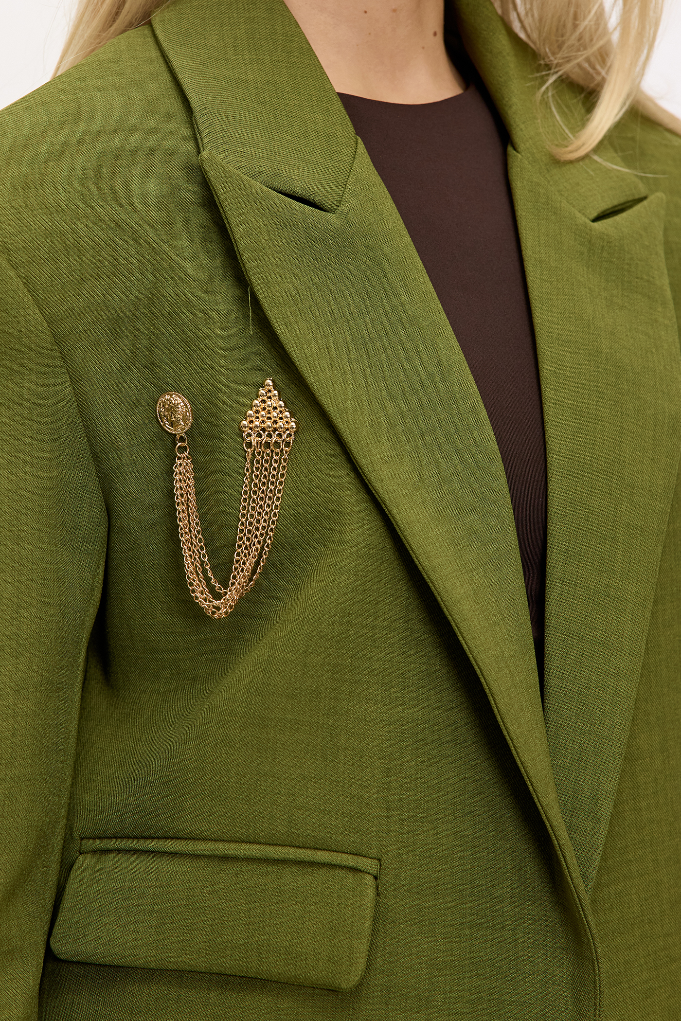 Broche dorée 7,99 €Cette chaîne de blazer dorée présente un design luxueux avec des détails texturés saisissants aux deux extrémités. Le collier à plusieurs couches de chaînes crée un look sophistiqué. Cet accessoire, fabriqué en acier inoxydable plaqué or à 100%, offre une mise à niveau chic à tout blazer ou veste.