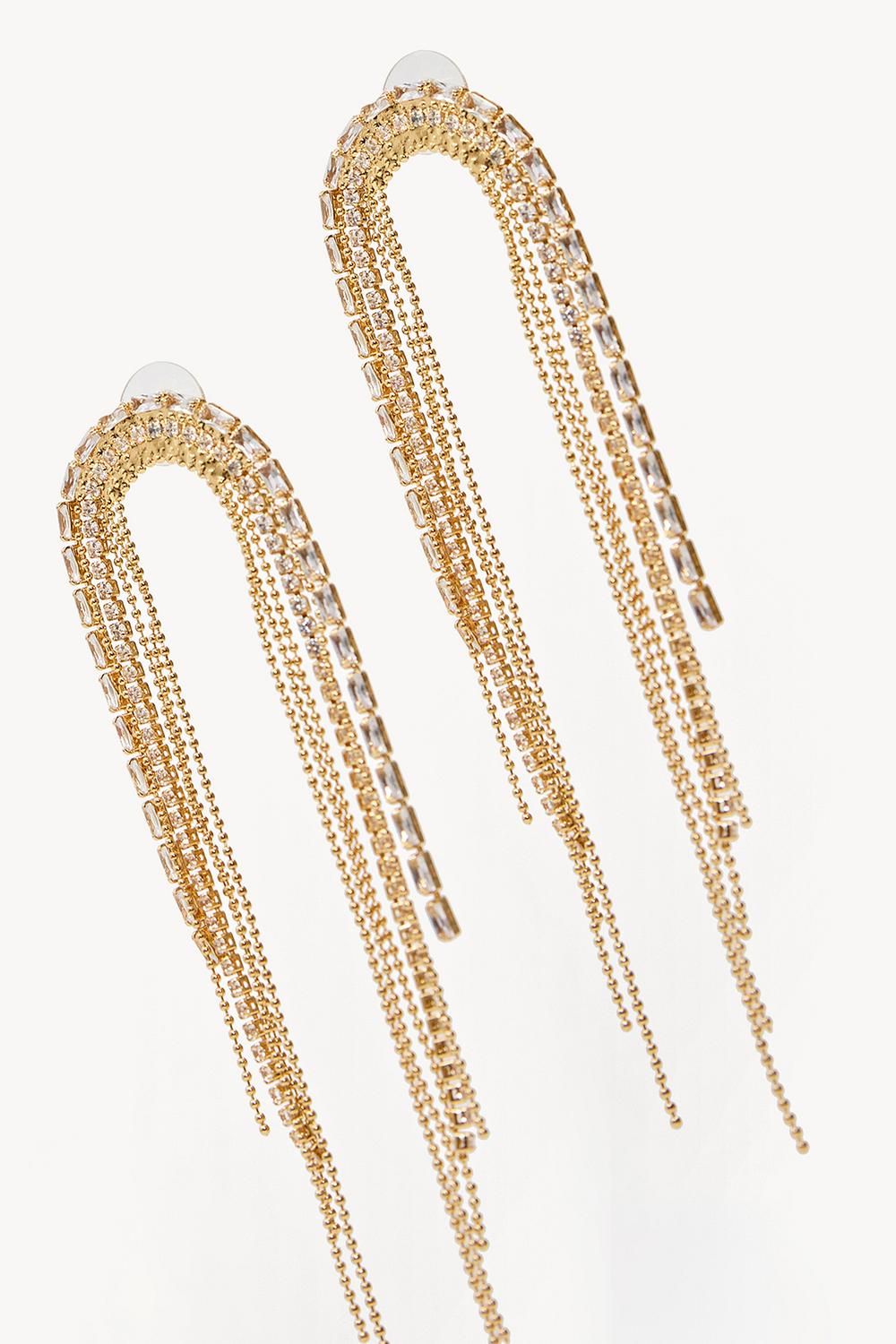 Boucles d’oreilles dorées avec strass 17,99 €Ces boucles d'oreilles dorées à la mode présentent un design en forme de U avec des détails de chaîne. Les longues chaînes mobiles créent un effet dramatique qui complète parfaitement un look de soirée chic. Ces boucles d'oreilles accrocheuses sont fabriquées en alliage de haute qualité et ajoutent instantanément une touche luxueuse à n'importe quelle tenue.