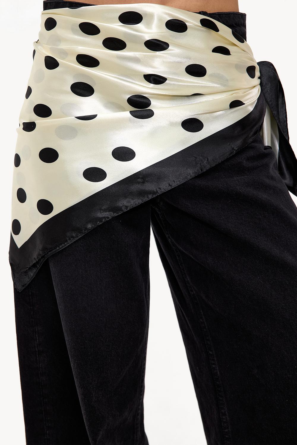 Cette écharpe blanc cassé présente un motif à pois classique avec des pois noirs partout. Le matériau en polyester doux assure confort et apparence luxueuse. L'écharpe polyvalente peut être portée de différentes manières pour un accent chic à toute tenue. Associez cette écharpe statement avec un tricot oversize pour un look décontracté et cool.
