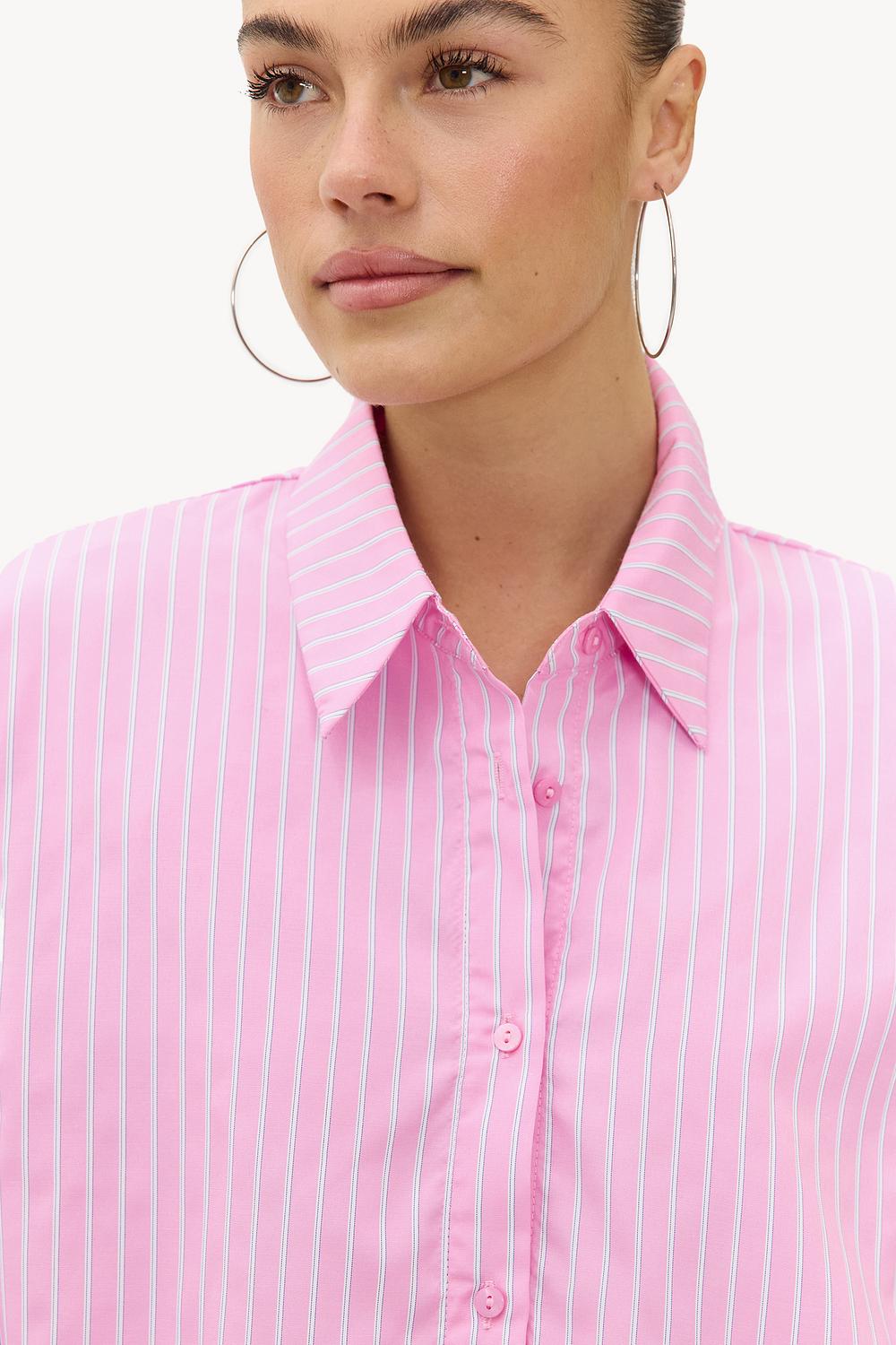 Chemisier court rose à rayures 39,99 €Cette blouse rose à boutons présente un motif à fines rayures classique pour un look intemporel. La coupe oversize avec fermeture à boutons et col classique crée une apparence chic et décontractée. Les manches longues avec poignets donnent à cette blouse une touche soignée. Associez cette blouse avec un jean à jambes larges pour un look de bureau sans effort.