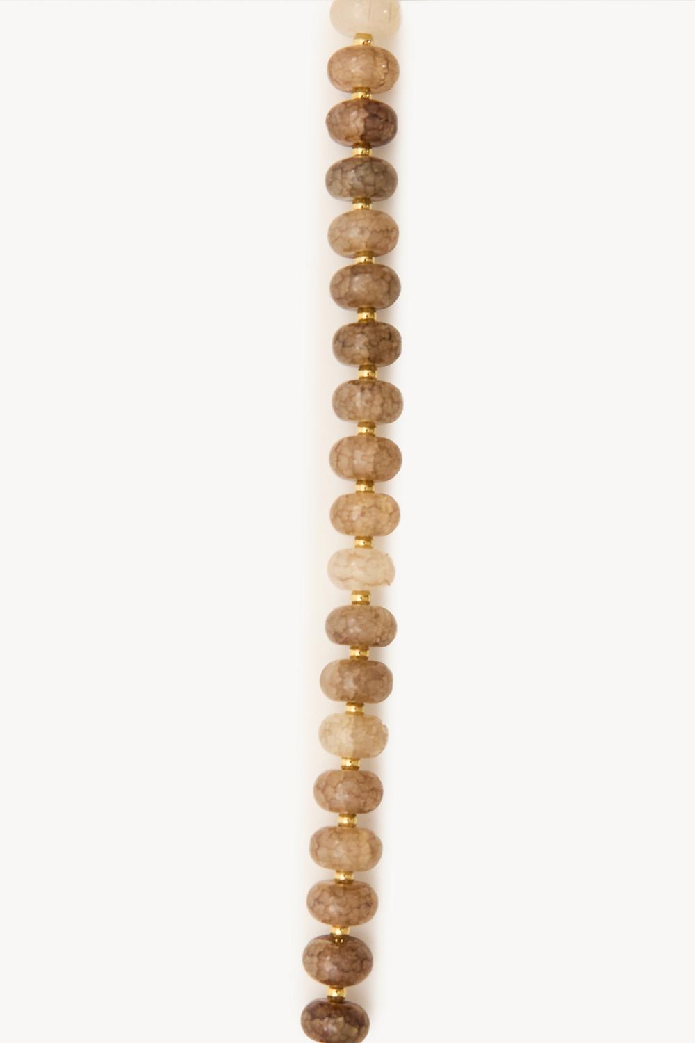 Ce collier en or présente un design perlé chic avec des tons bruns pour une apparence chaleureuse. Les perles rondes dans différentes nuances de brun créent un dégradé subtil qui complète parfaitement les looks décontractés et professionnels. La finition en acier inoxydable plaqué or ajoute une touche luxueuse qui complète toute tenue.