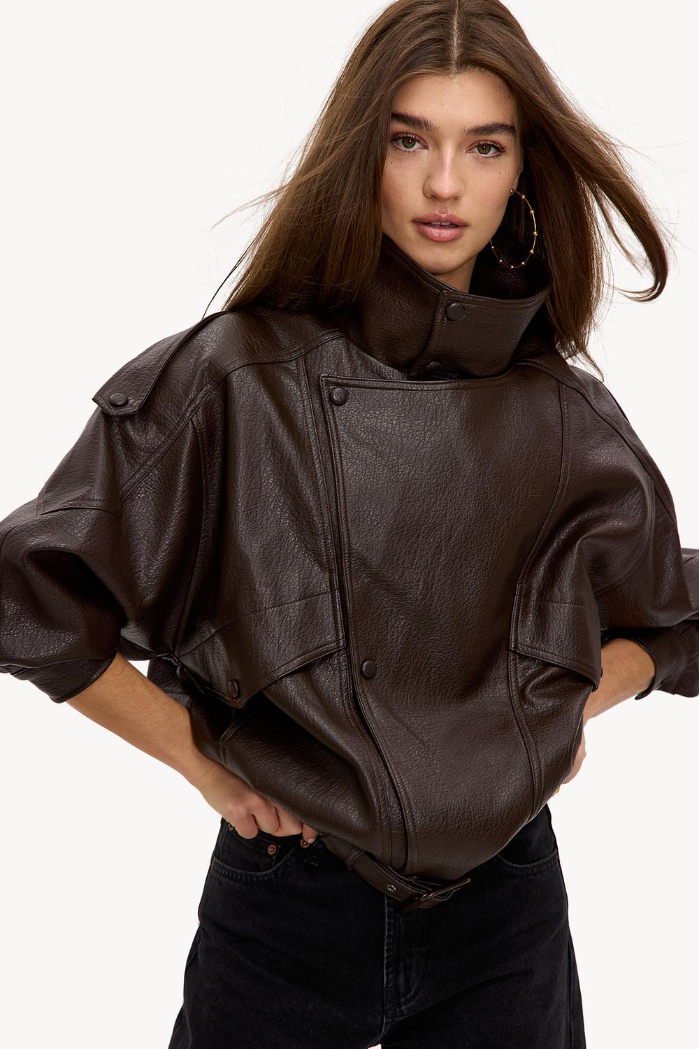 Veste en PU marron 89,99 €Cette veste de motard en PU marron foncé a une coupe oversize avec des manches ballon affirmées. Les détails modernes tels que la fermeture éclair asymétrique, les coutures contrastantes et l'ourlet élastique donnent à cette veste une touche audacieuse. Le col haut et la coupe décontractée créent un look rock-chic cool. Associez cette veste avec un jean skinny et des bottes pour un look street style iconique.