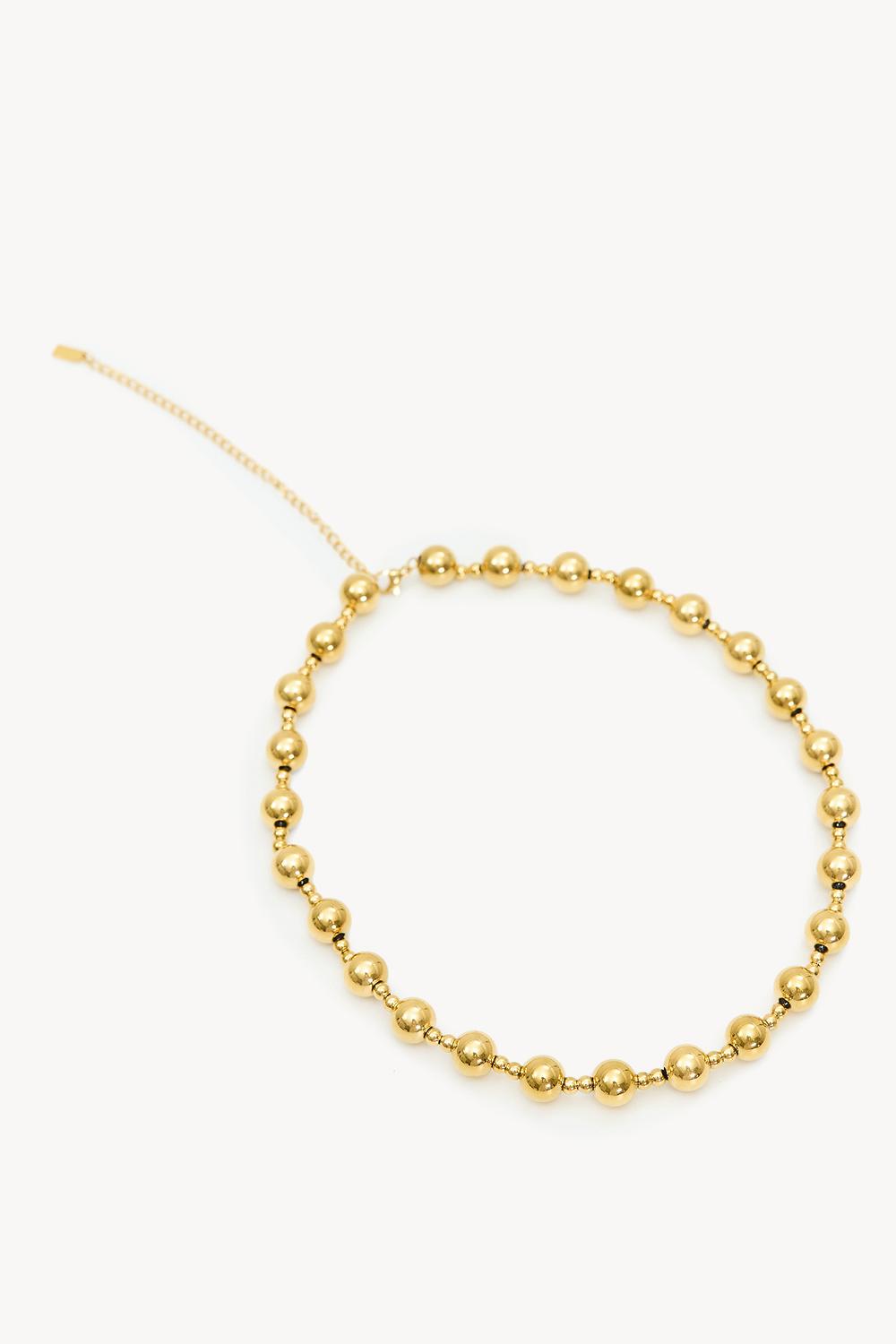 Ce collier à chaîne à billes en or présente un design classique de perles pour un look chic. Les perles de statement offrent une apparence luxueuse qui s'accorde parfaitement avec des tenues décontractées et formelles. La longueur ajustable rend ce collier un accessoire polyvalent pour toute occasion. Portez ce collier avec un tee-shirt basique pour un look quotidien rehaussé.