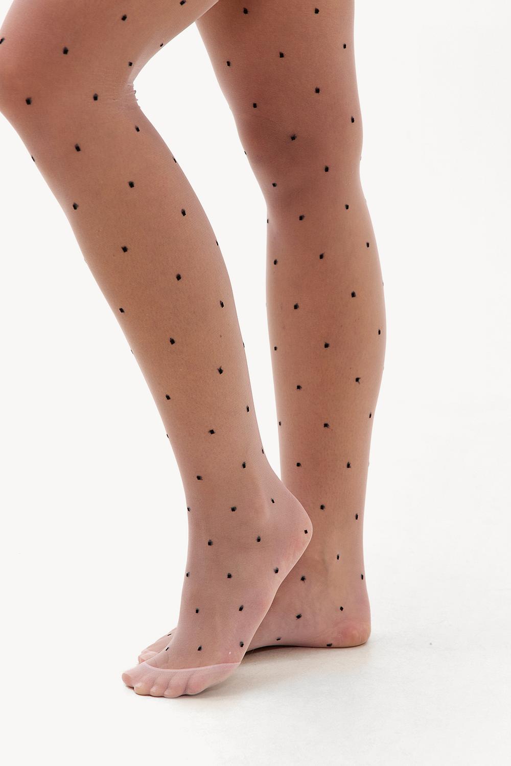 Ce collant rose présente un imprimé à pois sur toute la surface pour un look affirmé. La qualité transparente avec des détails de points subtils crée une touche moderne sur le collant classique. L'élasticité confortable assure un ajustement parfait. Associez ces collants avec des talons roses et une tenue assortie pour un look monochrome cool.