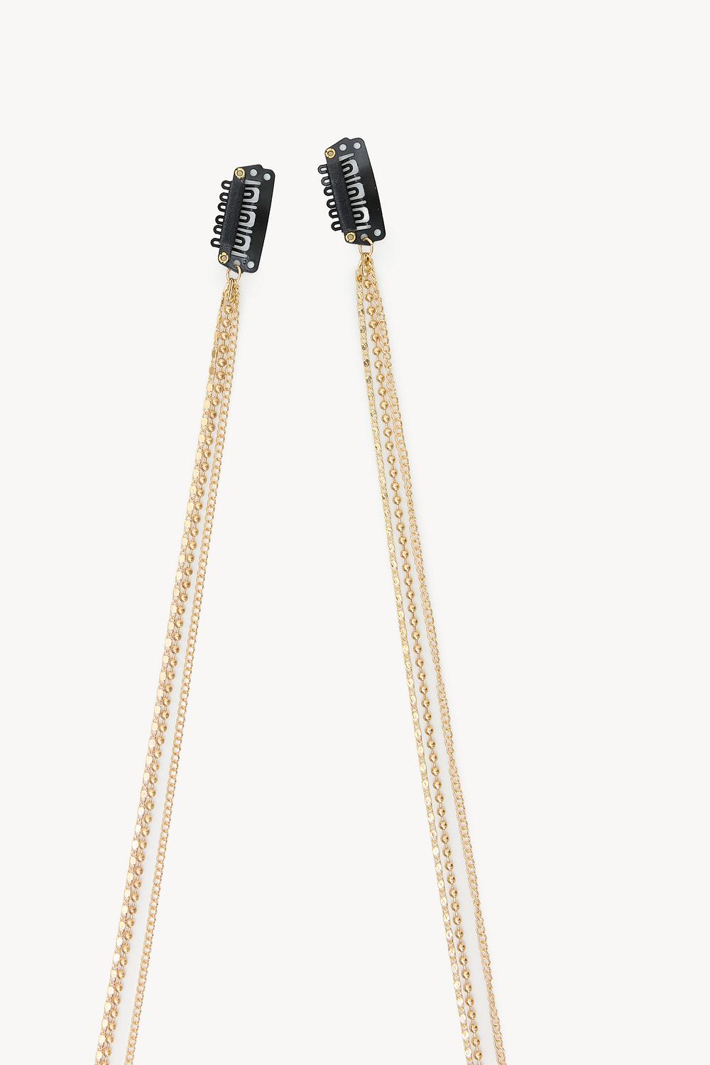 Ces attaches pour cheveux dorées comportent des chaînes élégantes qui ajoutent une touche luxueuse à votre coiffure. La finition dorée en acier inoxydable à 100% assure durabilité et apparence chic. Les clips noirs offrent une prise ferme tandis que les chaînes dorées ajoutent un détail qui fait sensation. Parfait pour attacher vos cheveux avec style et une touche moderne.