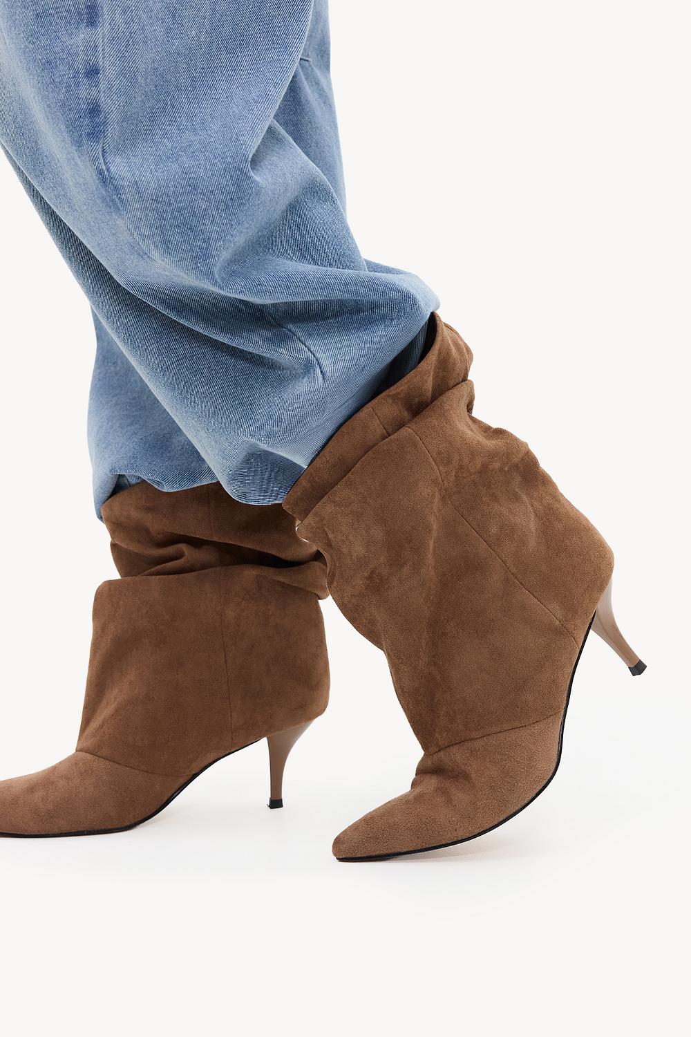 Talons en daim camel 59,99 €Ces bottines camel effet daim présentent un design ample avec des détails drapés pour un look chic et décontracté. L'orteil pointu et le talon compensé donnent à ces bottines une touche moderne. La texture douce effet daim offre une apparence luxueuse. Portez ces bottines avec un jean large pour un look décontracté pour un dîner en tête-à-tête.