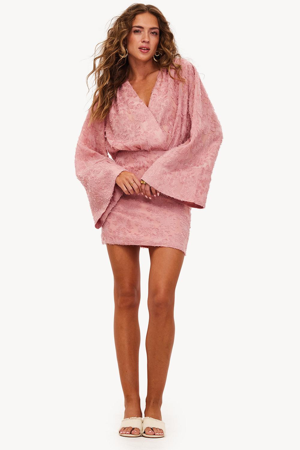 Roze mini jurk EUR 49,99Deze mini jurk heeft een V-hals, wijde mouwen, een ritssluiting aan de zijkant en een voering aan de onderkant.