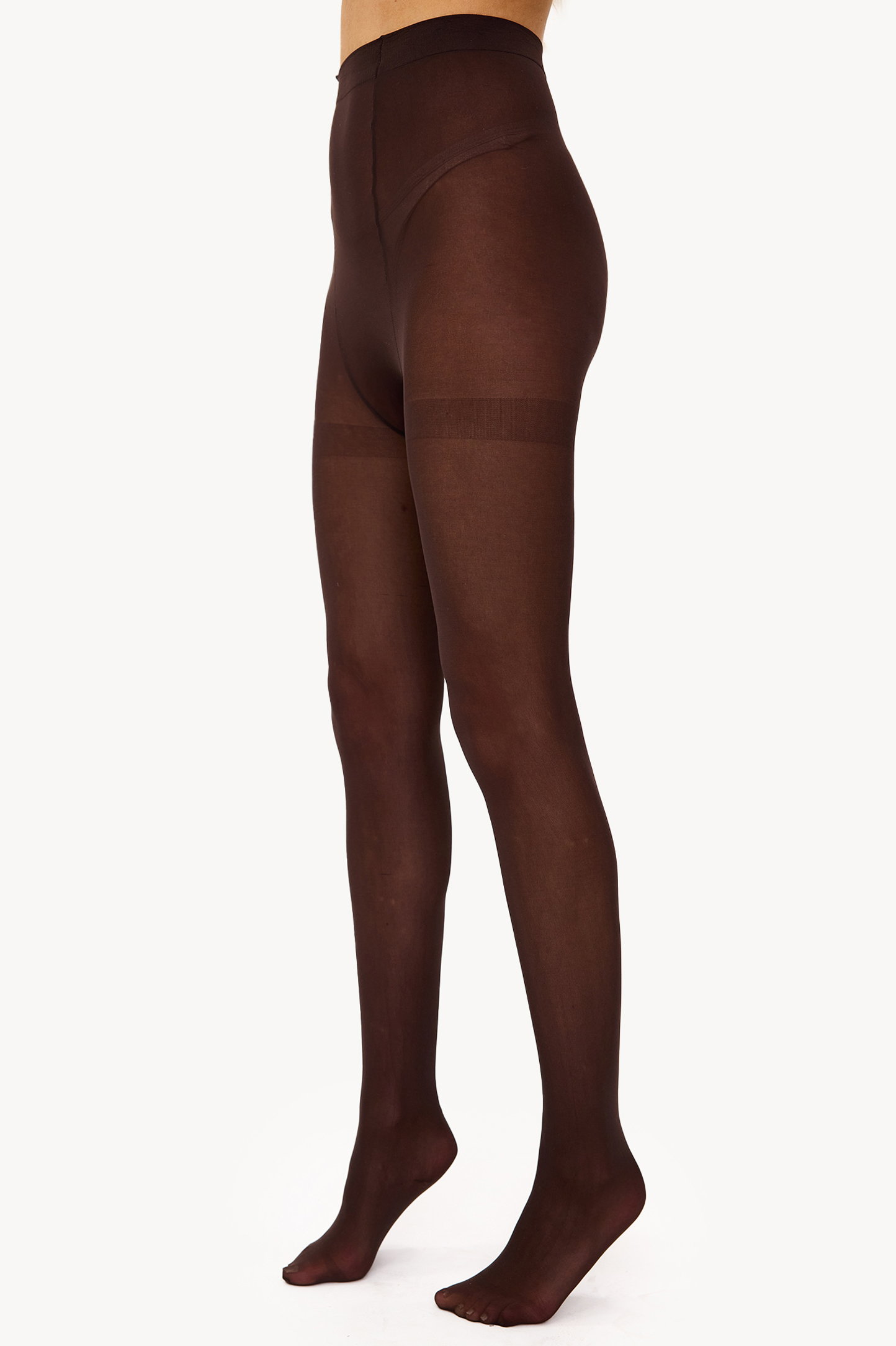 Deze bruine panty heeft een luxe ondoorzichtige finish voor een sophisticated look. De polyamide-elastane blend zorgt voor een comfortabele stretch en perfecte pasvorm. De rijke chocoladebruine kleur geeft een warme, chique uitstraling. Style deze panty met een mini dress en pumps voor een polished office look.